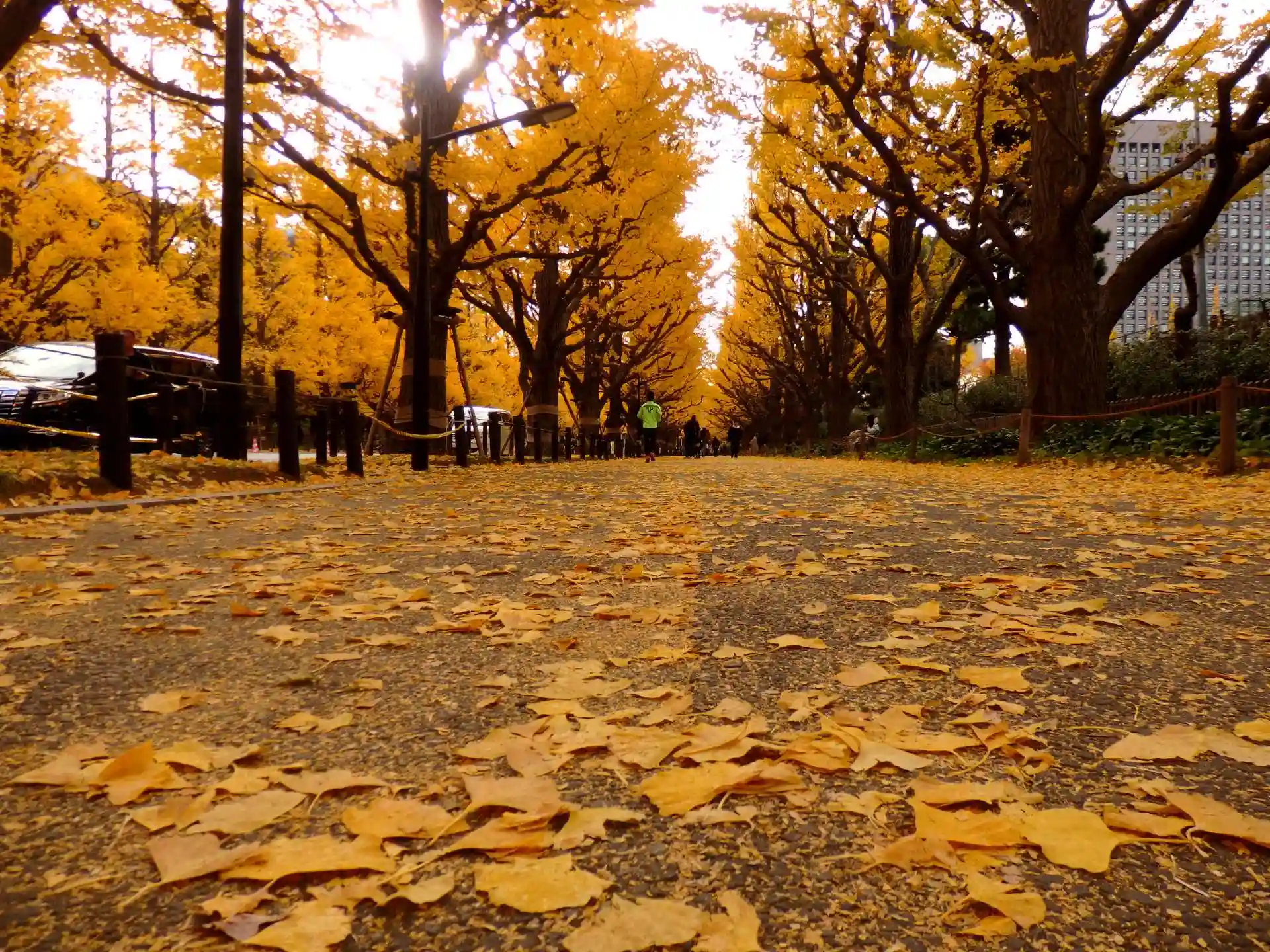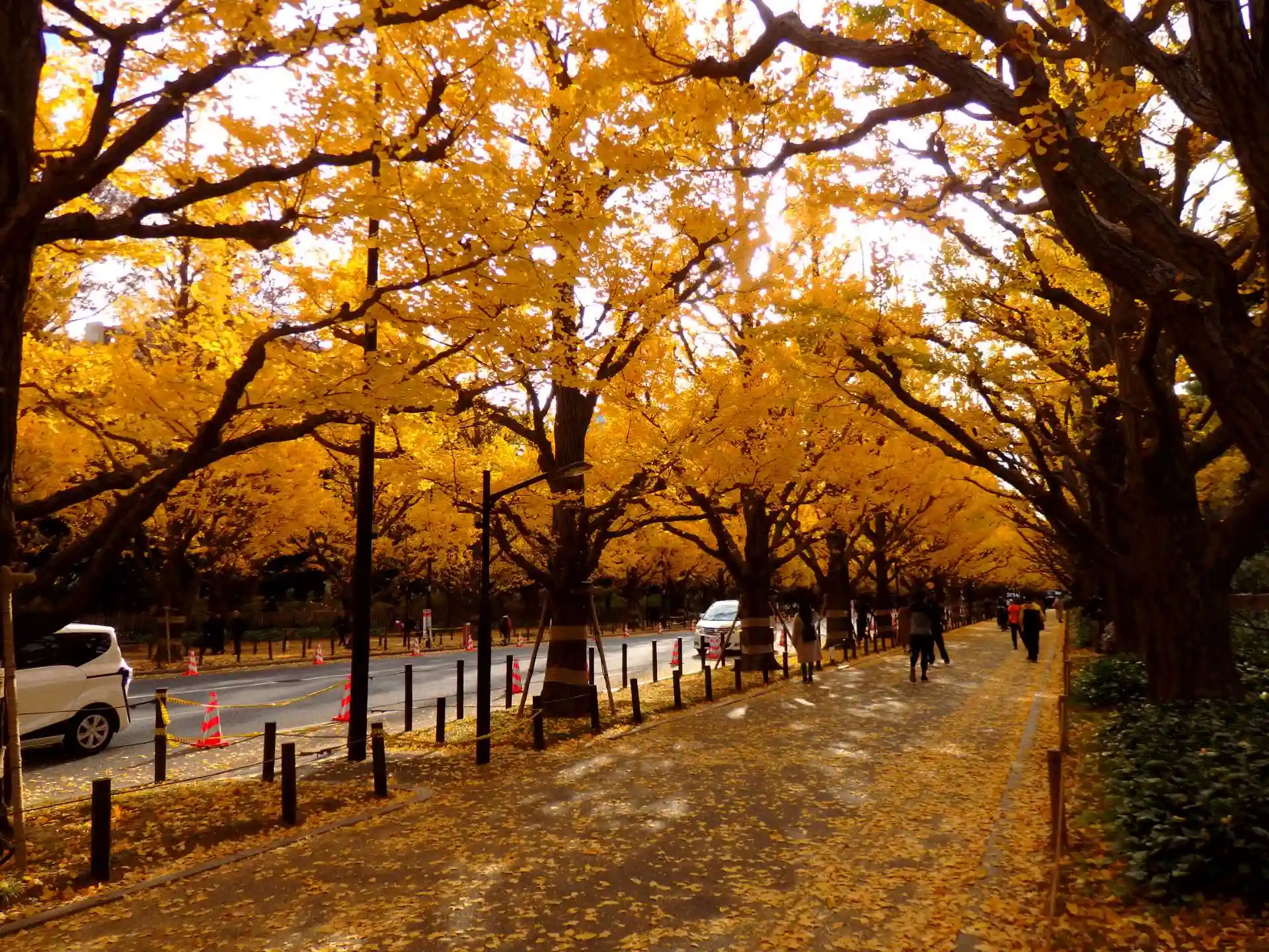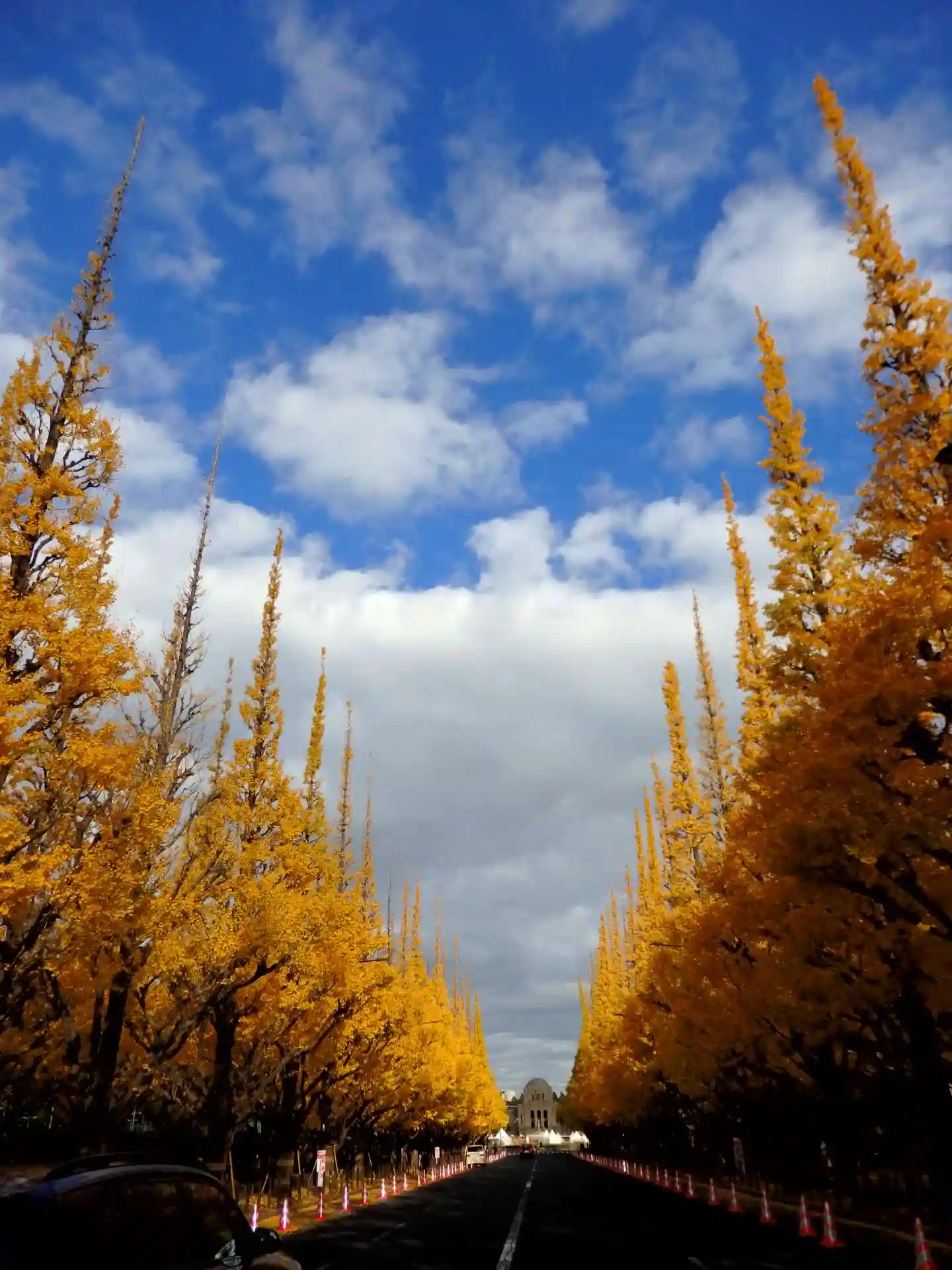日の出と共に朝イチは明治神宮外苑イチョウ並木を見学。駐車場から徒歩約5分。朝9時頃になると外国人観光客で一杯車も一杯。