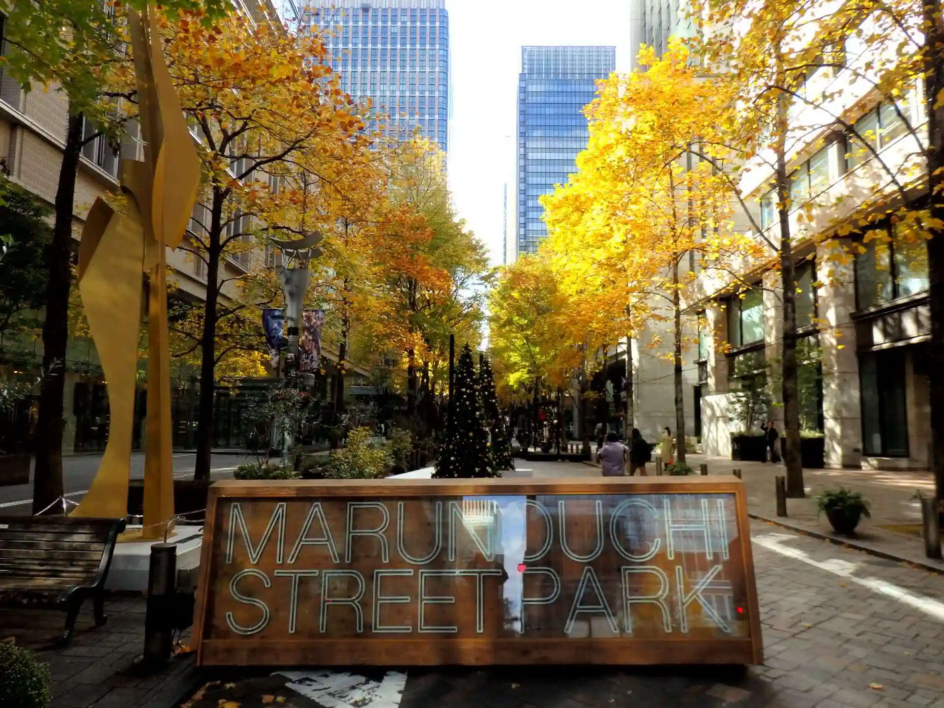 丸の内。クリスマス飾りと紅葉が一緒に見れる年になりました。