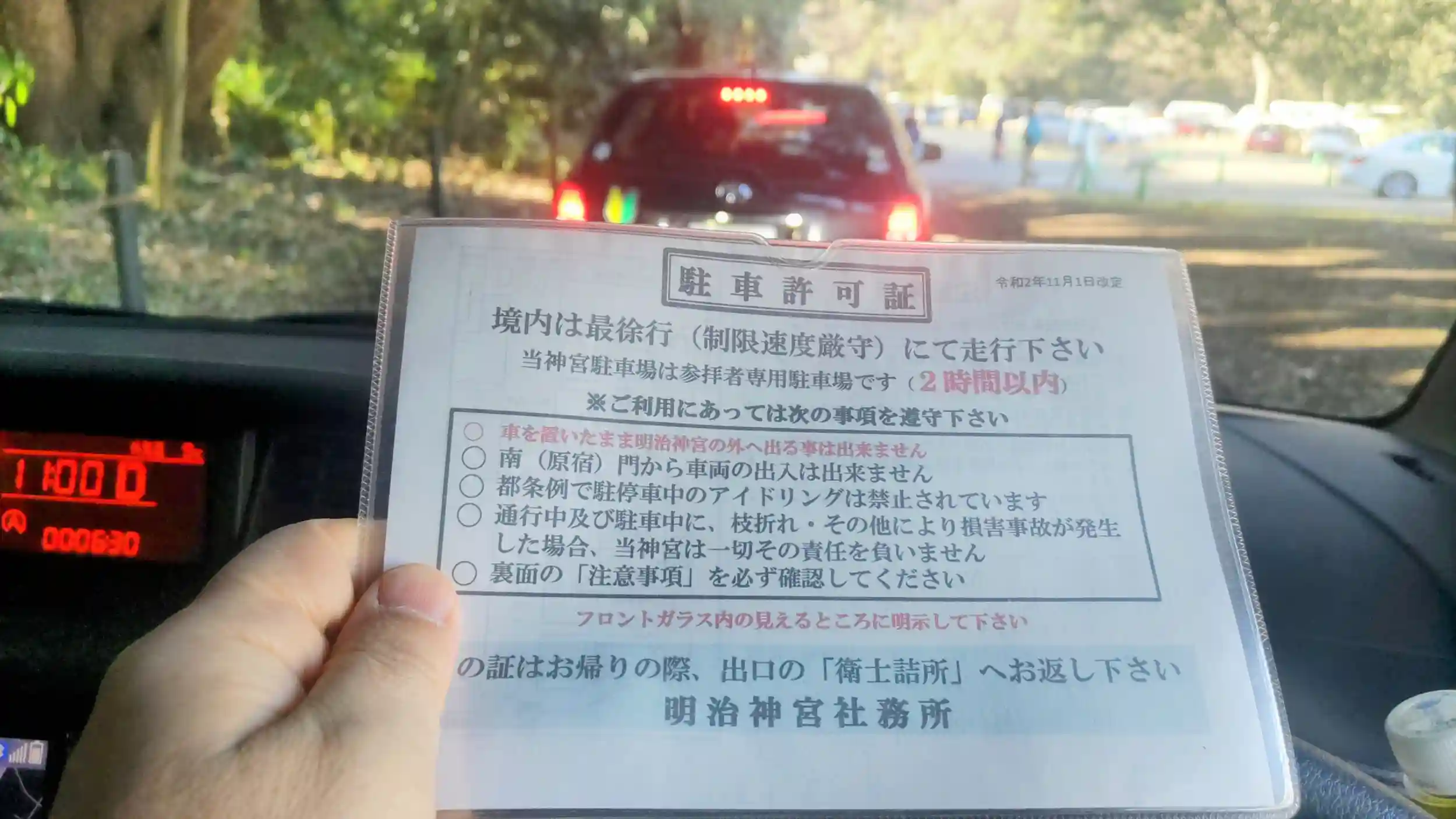 無料かつ広大な駐車場があります。カーナビでは渋谷区代々木1-1-2に設定すると入口近くに着きます。