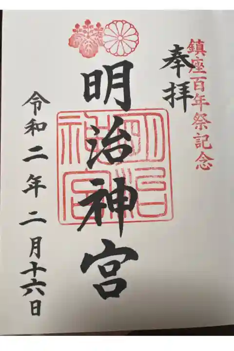 明治神宮鎮座100周年祭記念時の御朱印帳と御朱印です