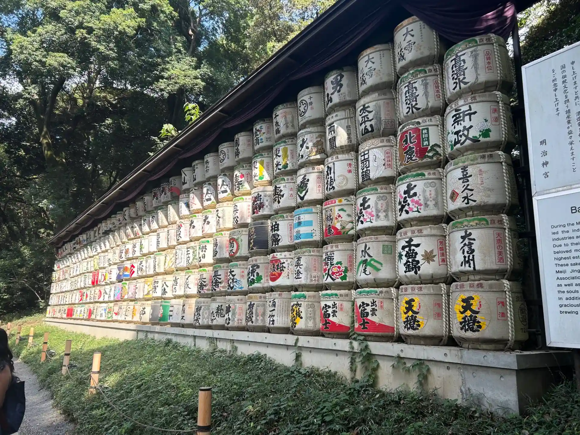 参道にずらりと並ぶ奉納の酒樽は、国内外