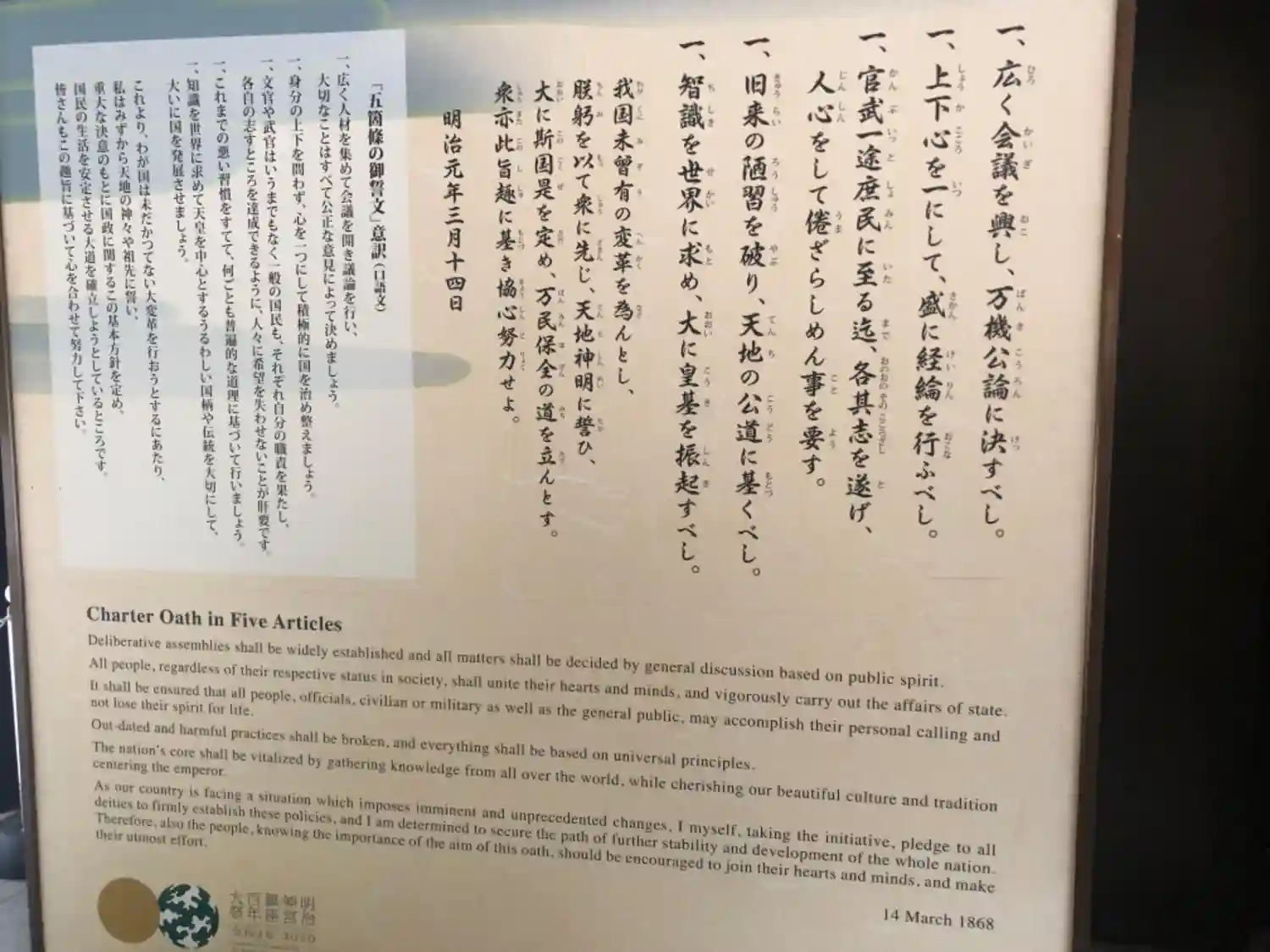 改めて以前暗記した五箇条のご誓文を改めて読んだのですが、なるほどなぁ!と感心させられました。