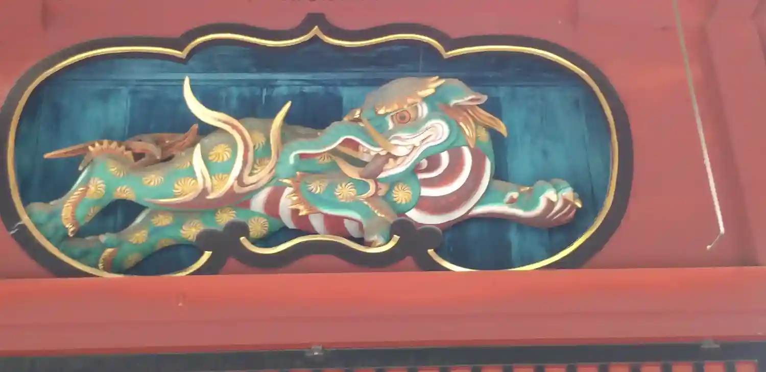 龍?麒麟?鼻が象のように長いのですが耳は犬のような生き物。神社の栞によると獏だそうです。