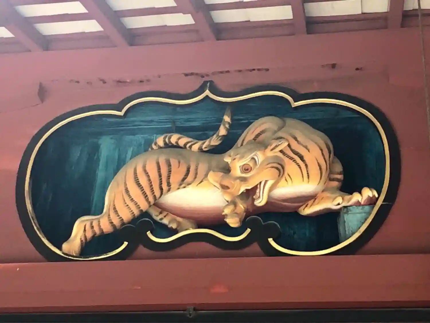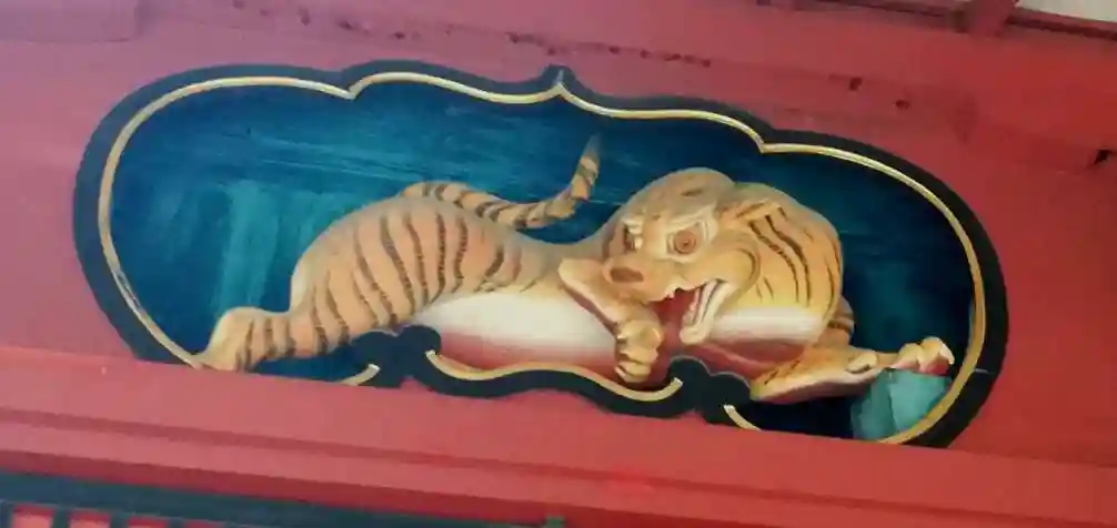 虎の装飾の社殿