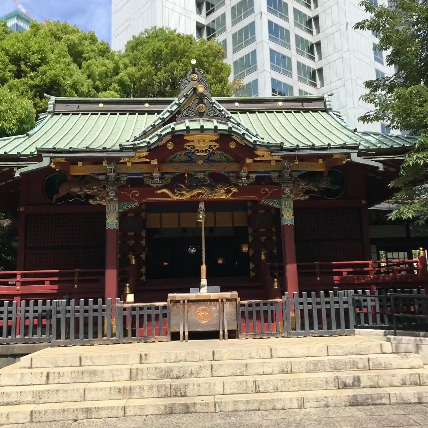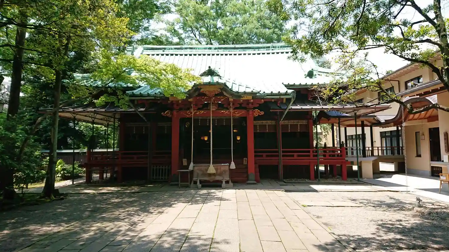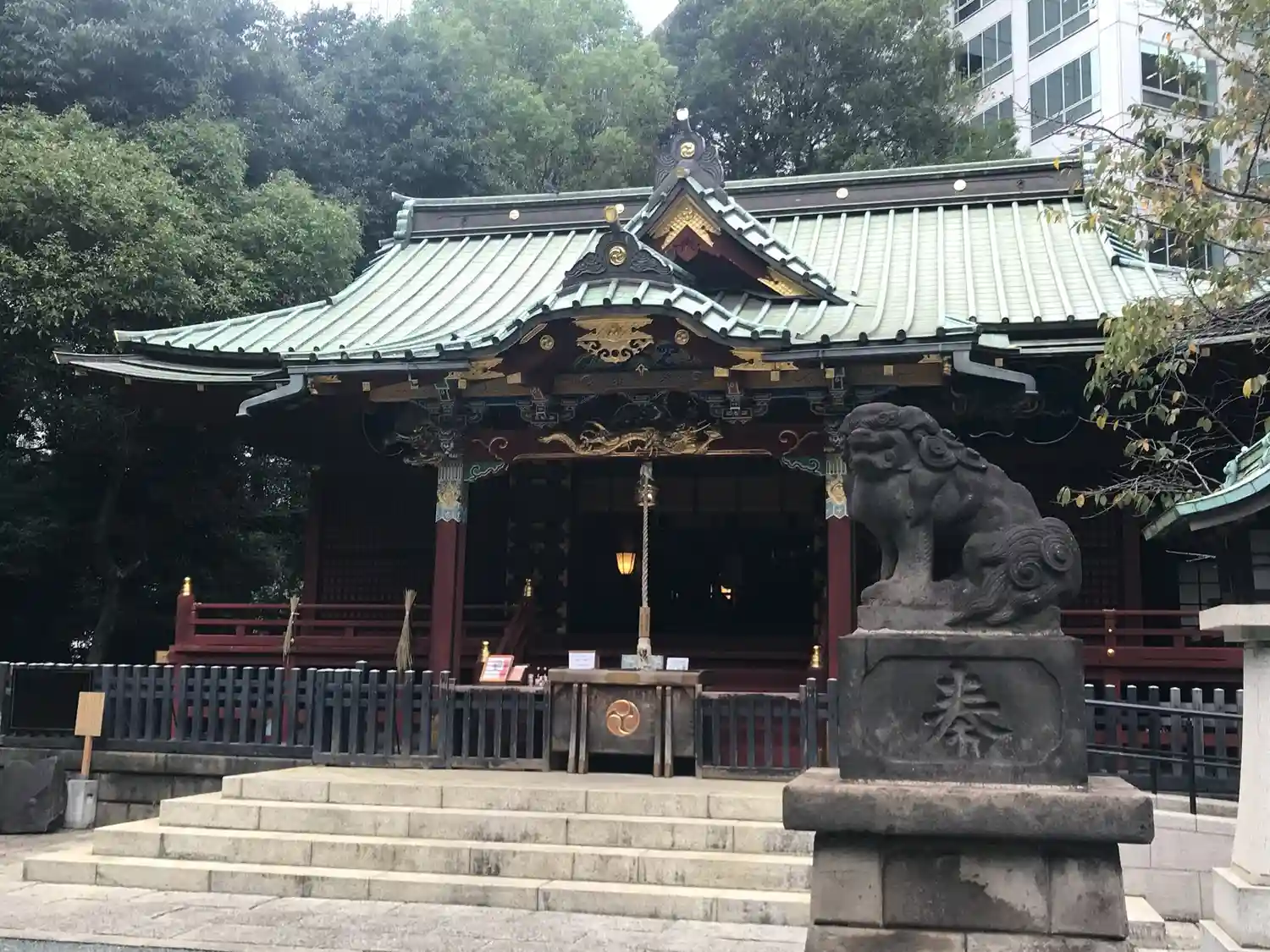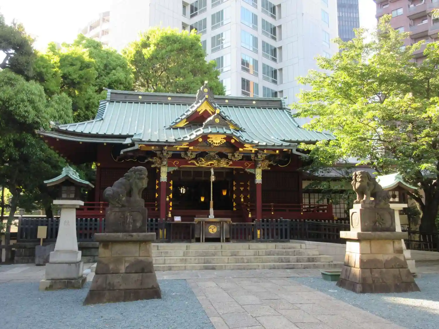 オフィス街の中にある手入れの行き届いた綺麗で落ち着いた雰囲気のある神社…