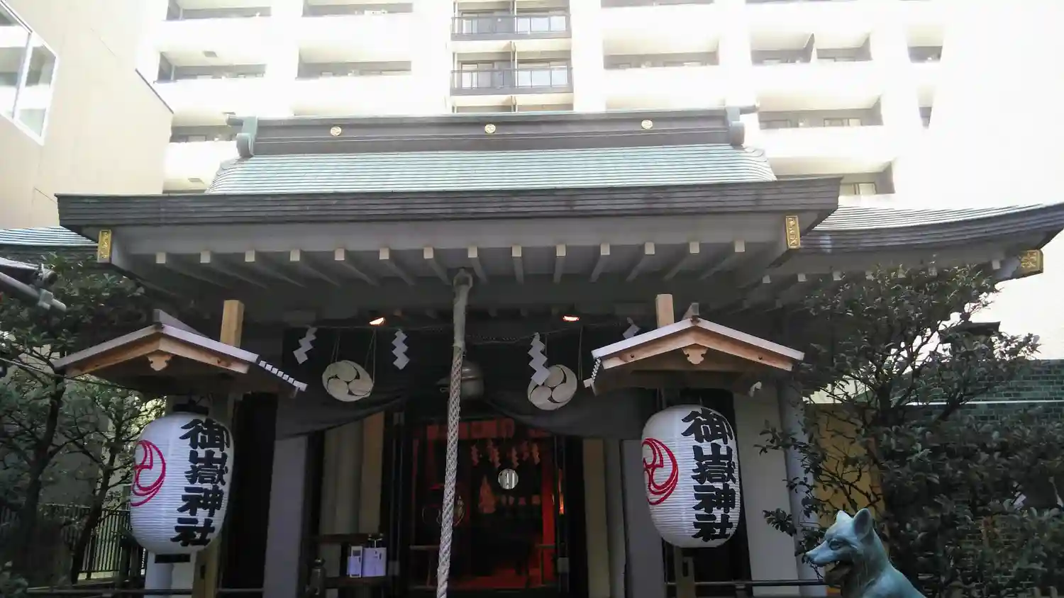 渋谷・宮益坂からちょっと入ったところにあるビル街の神社です。狛犬は日本オオカミです。