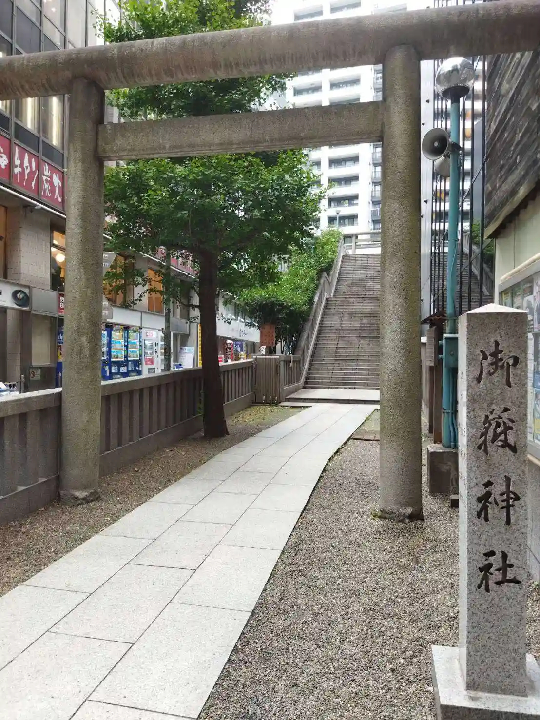 石段を登りきると、ビルに囲まれ…