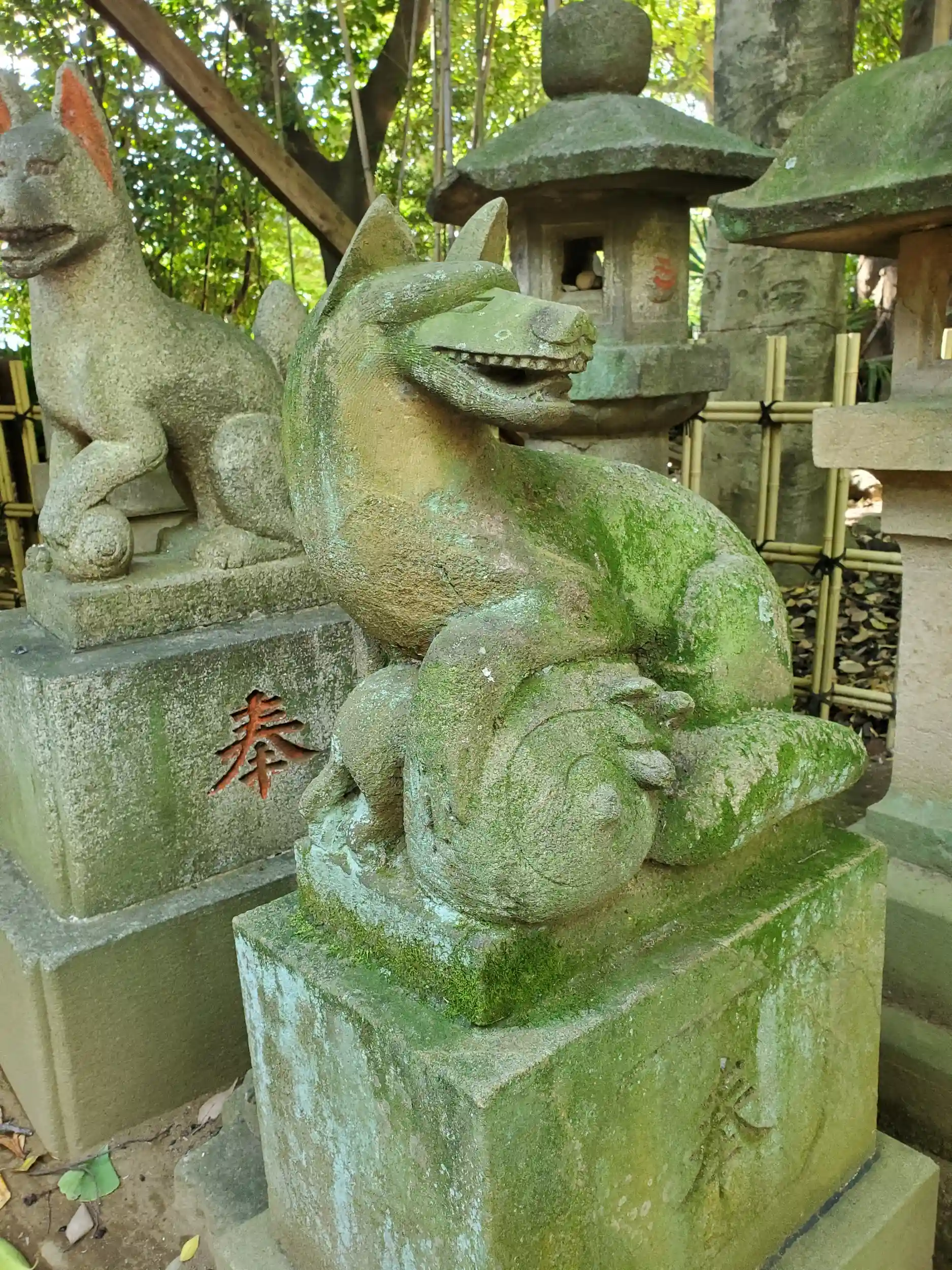 他にも古めかしい狛犬や狐さまもあって👍