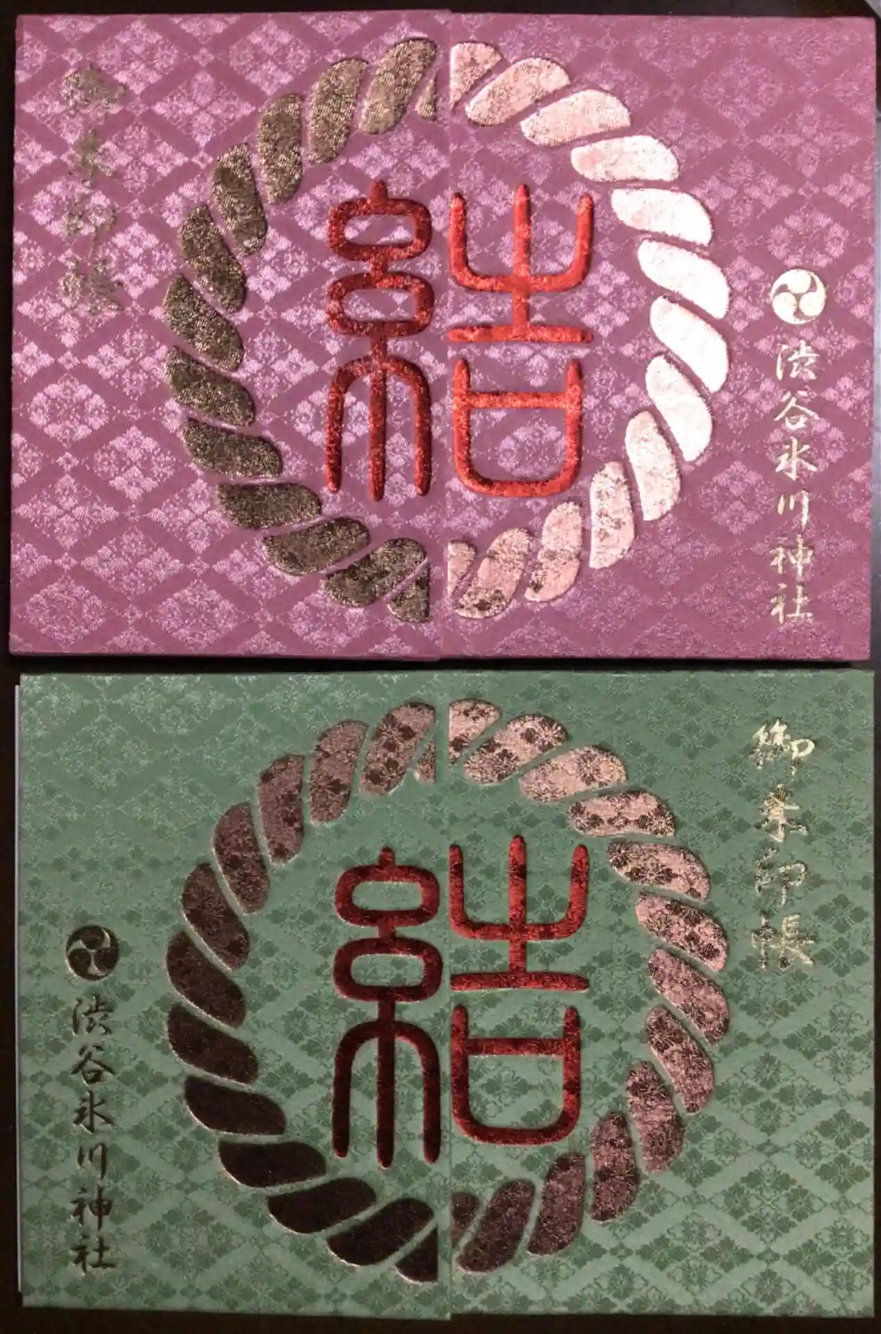 御朱印帳の表裏を合わせると「結」の文字になります。別の色と合わせてもいいですね。