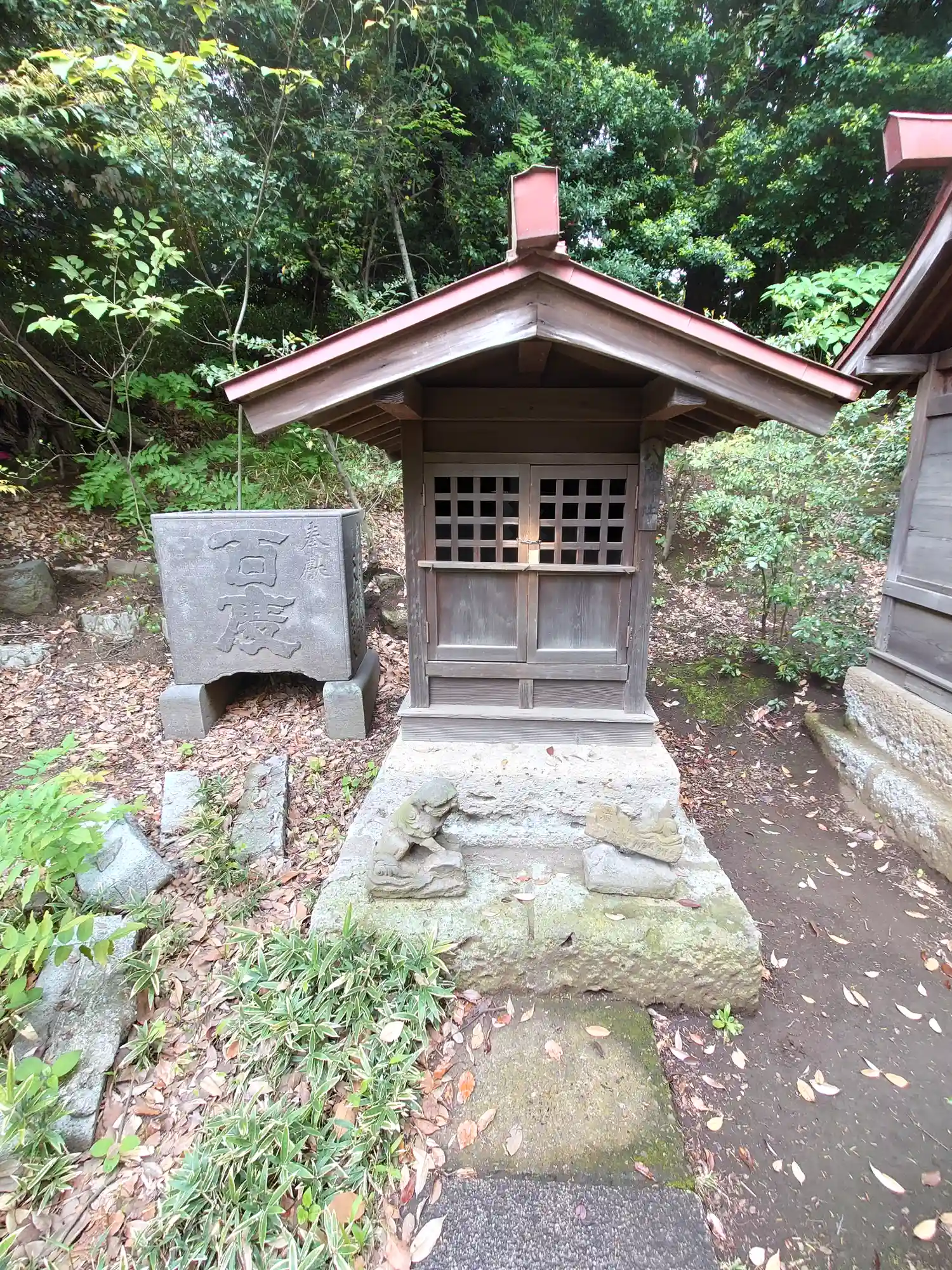 社殿右側にお社、その奥に鳥居がありました