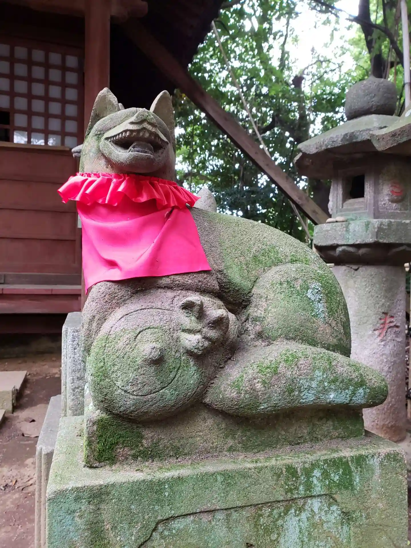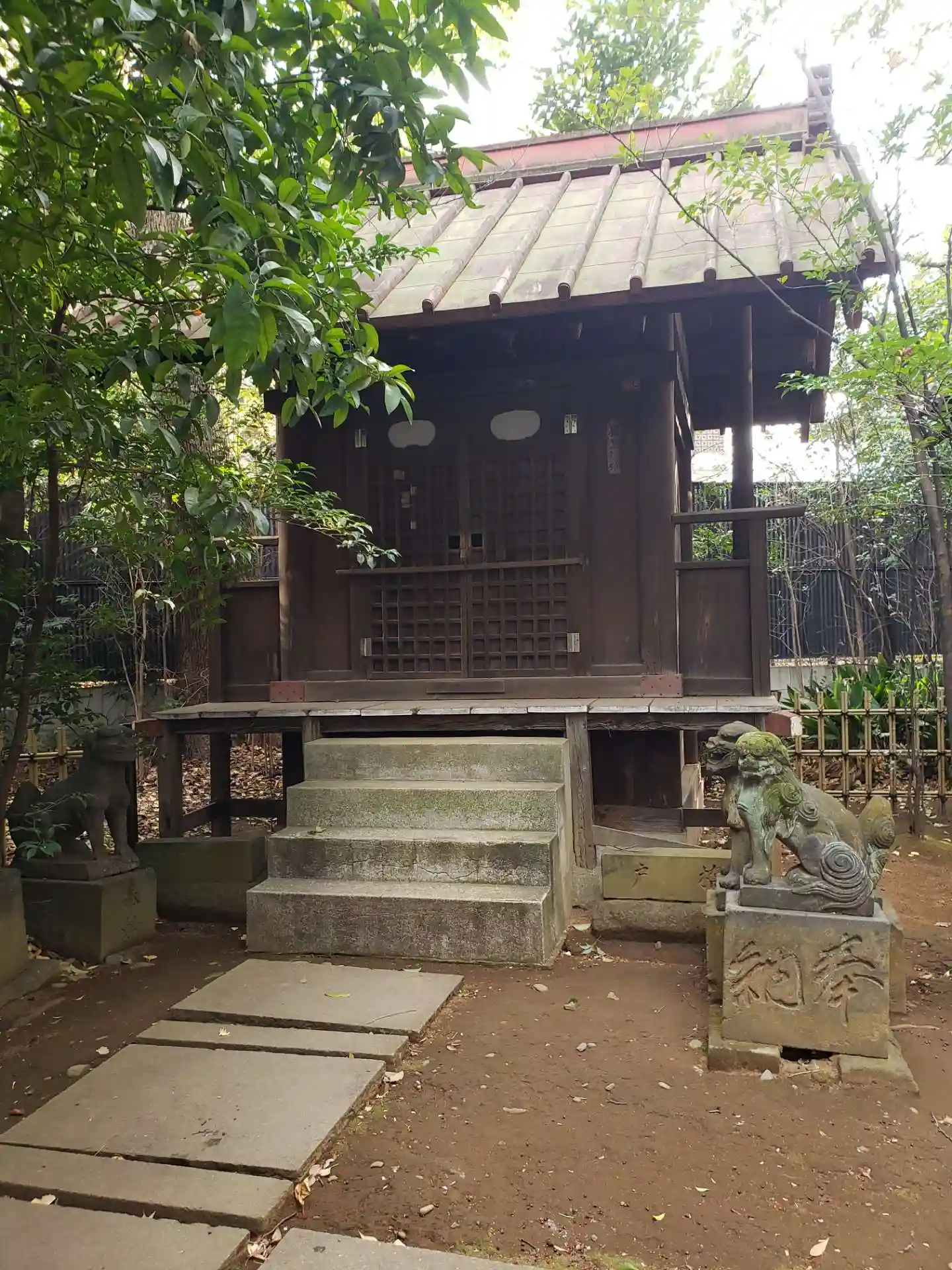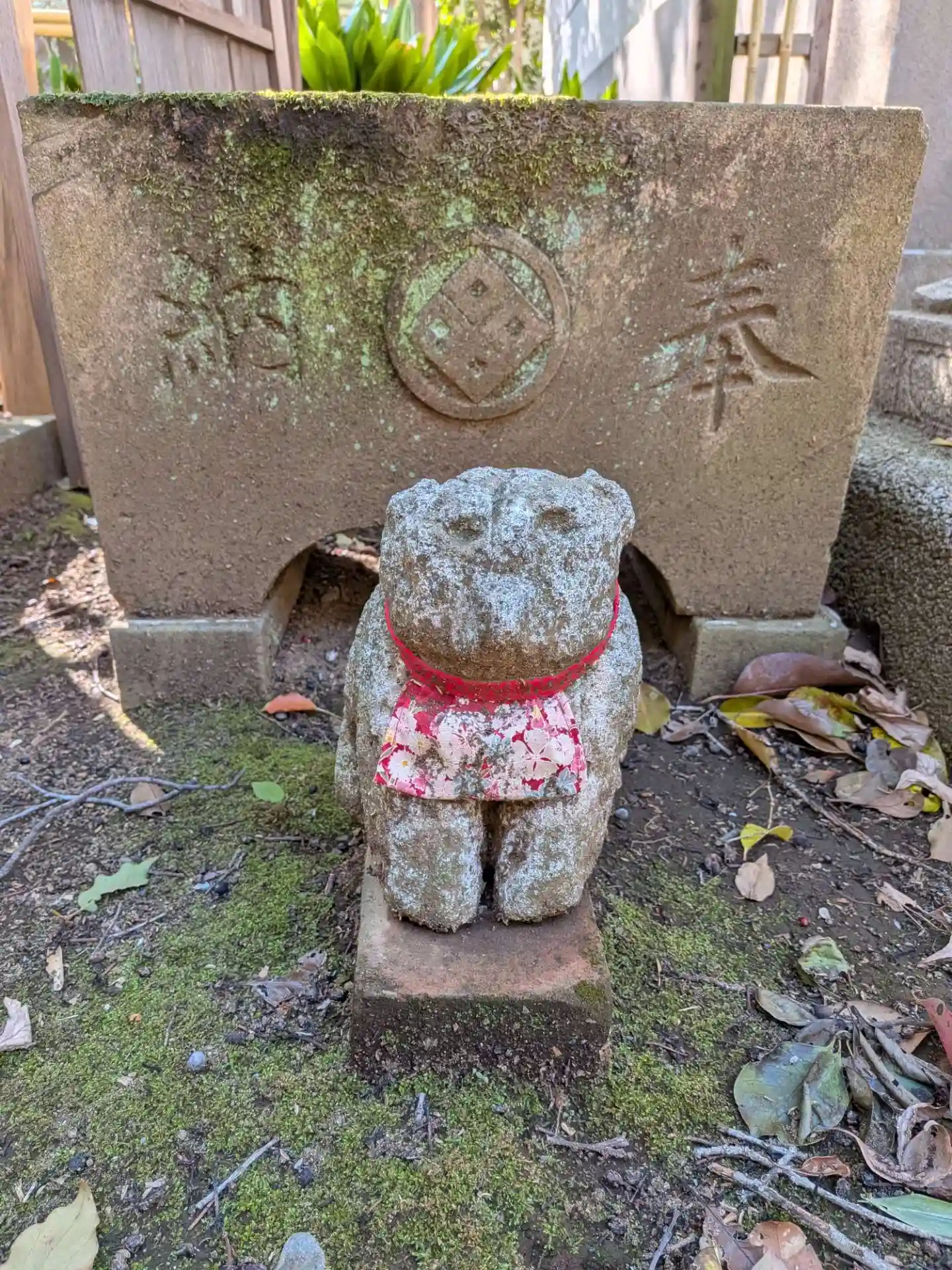 本殿向かいの末社をお守りしている、ちびっこ狛犬が可愛い…