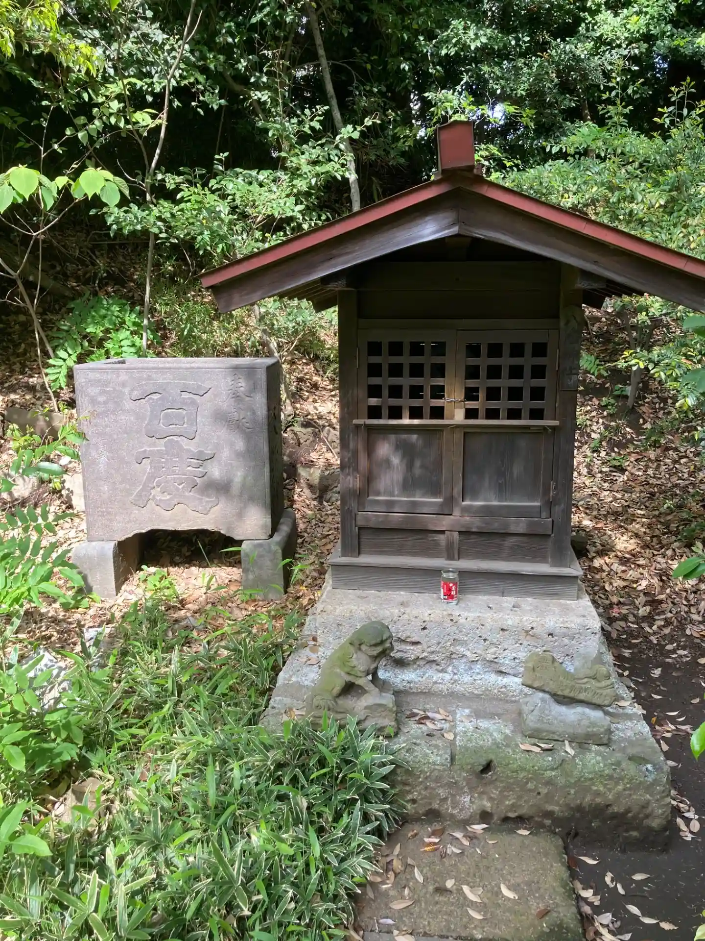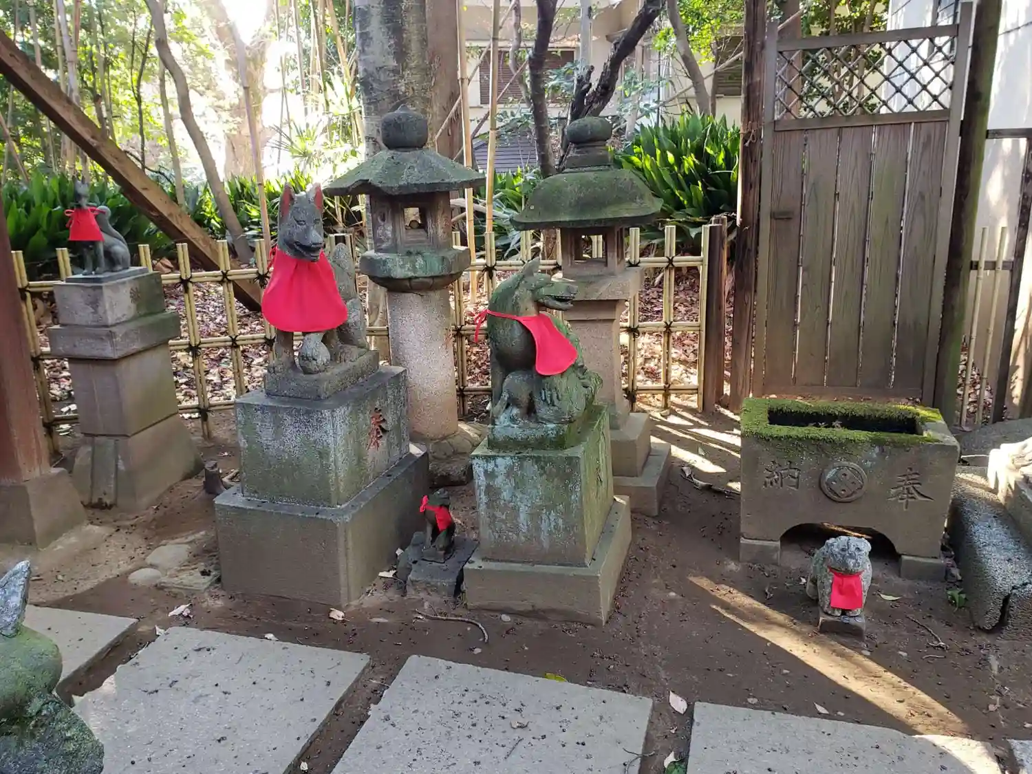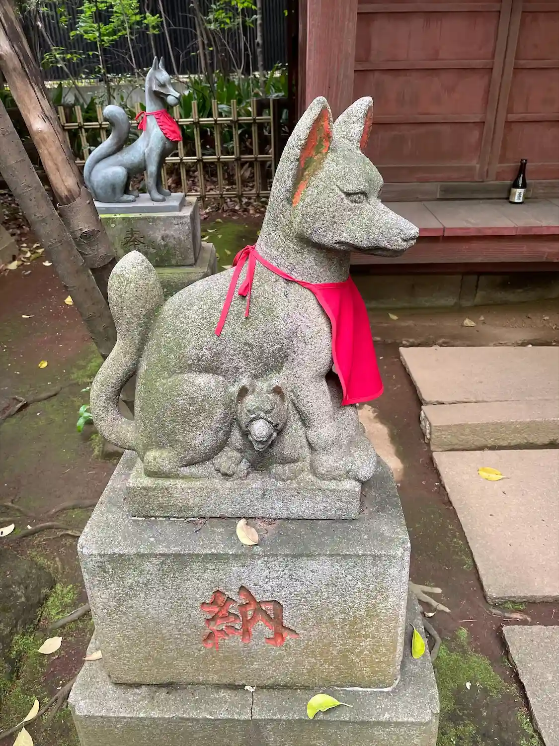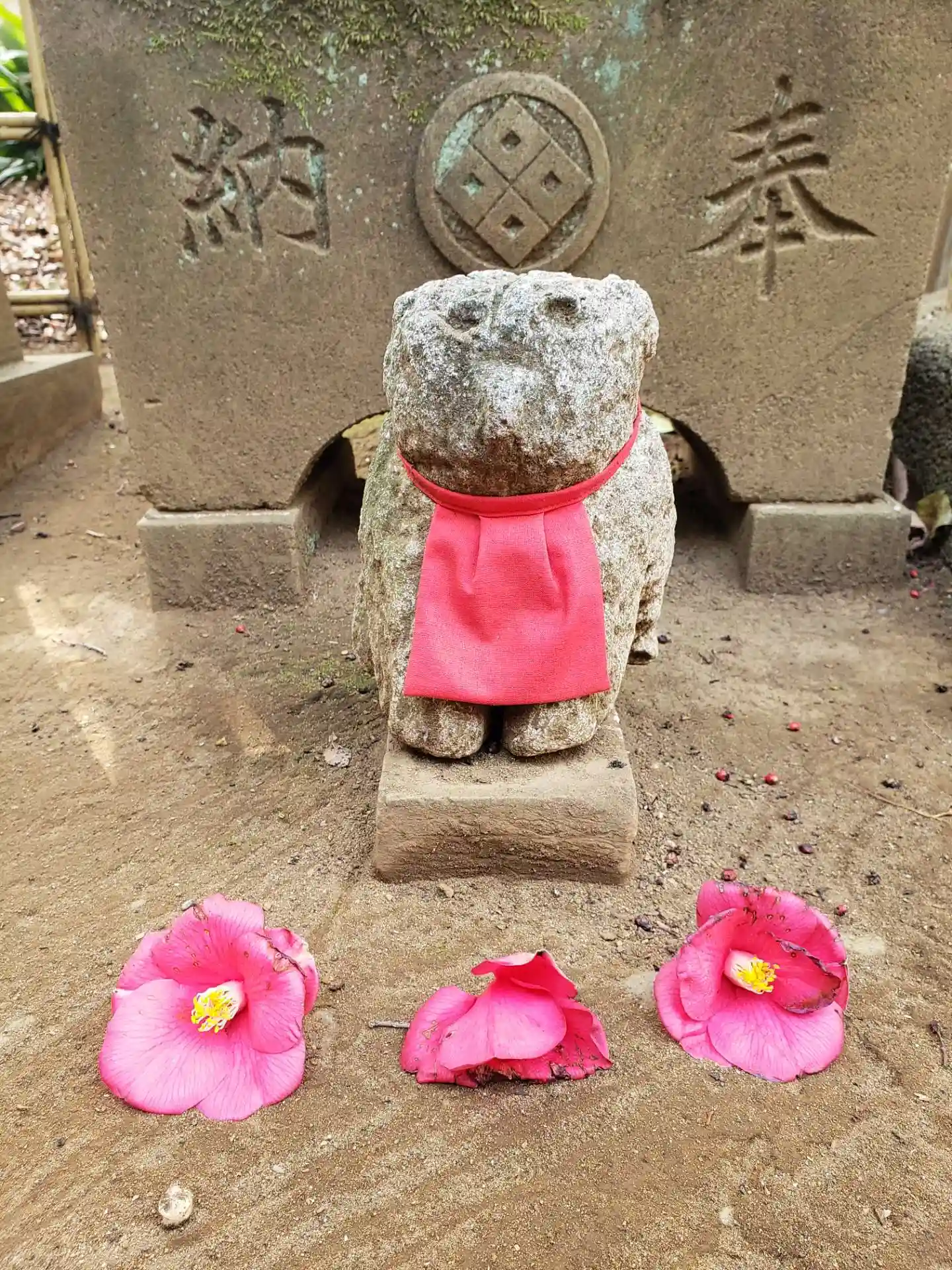 本殿向かいの末社をお守りしている、ちびっこ狛犬が可愛い…