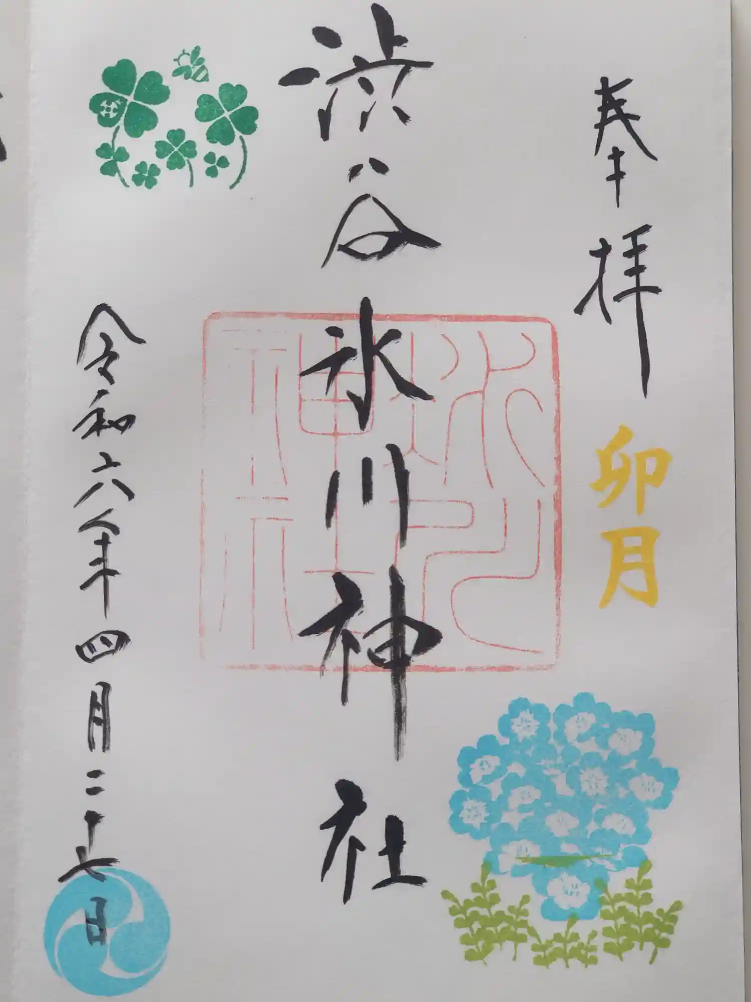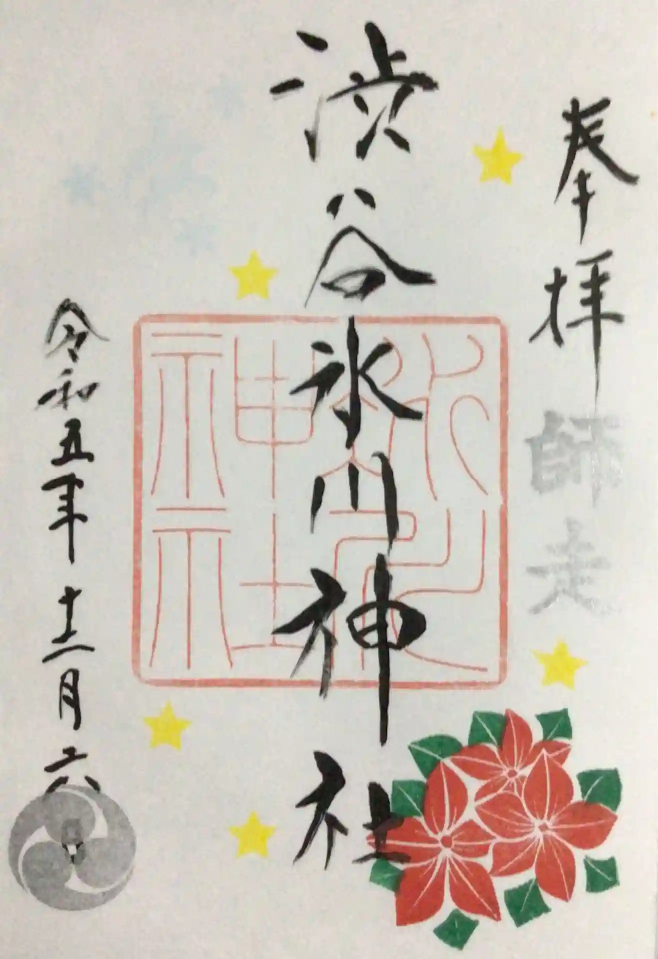 渋谷氷川神社の御朱印を直書きでいただきました