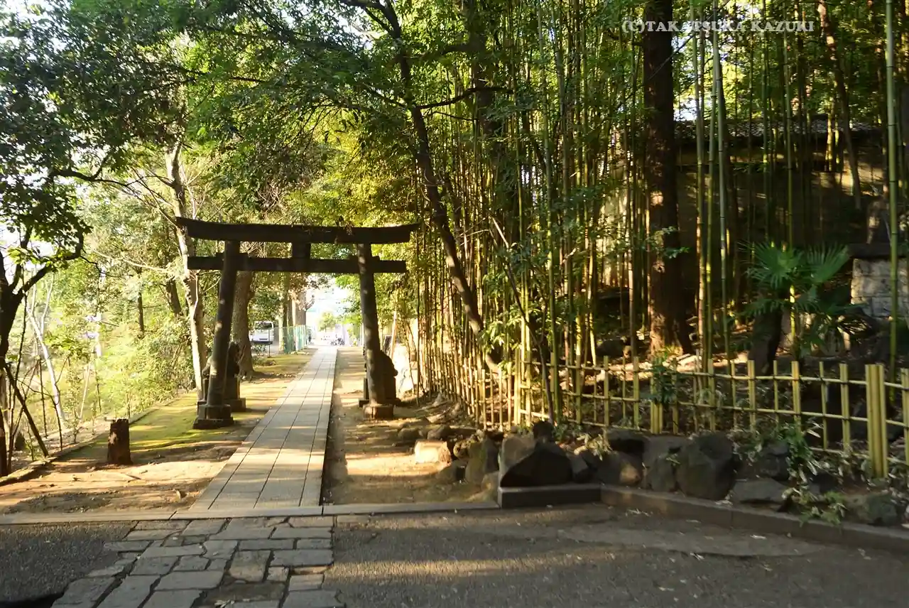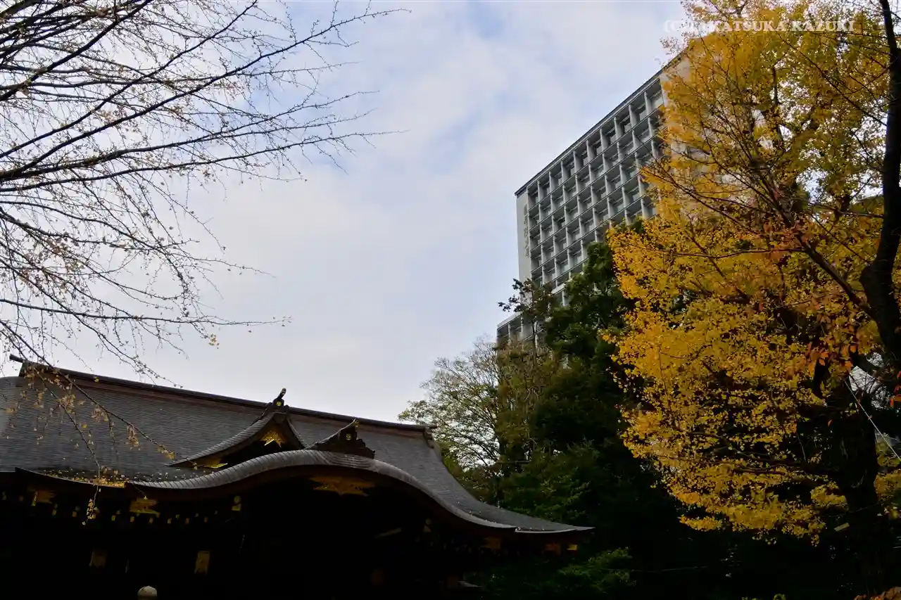 國學院大學のすぐ隣に鎮座されています。