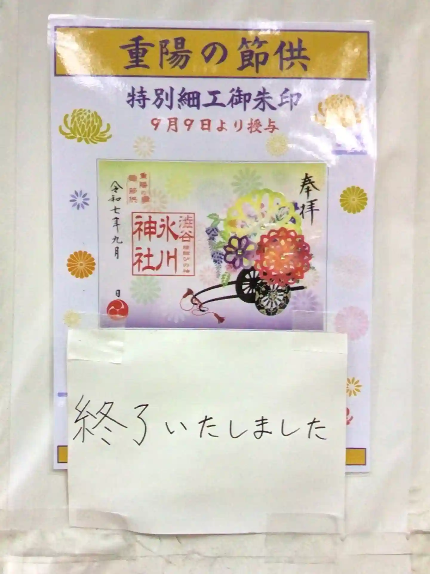 事前に印刷されたポスターでは御朱印帳にお書き入れできる日のご案内がありますが、コロナウイルス対策でしばらくは書き置きのみとなるそうです。