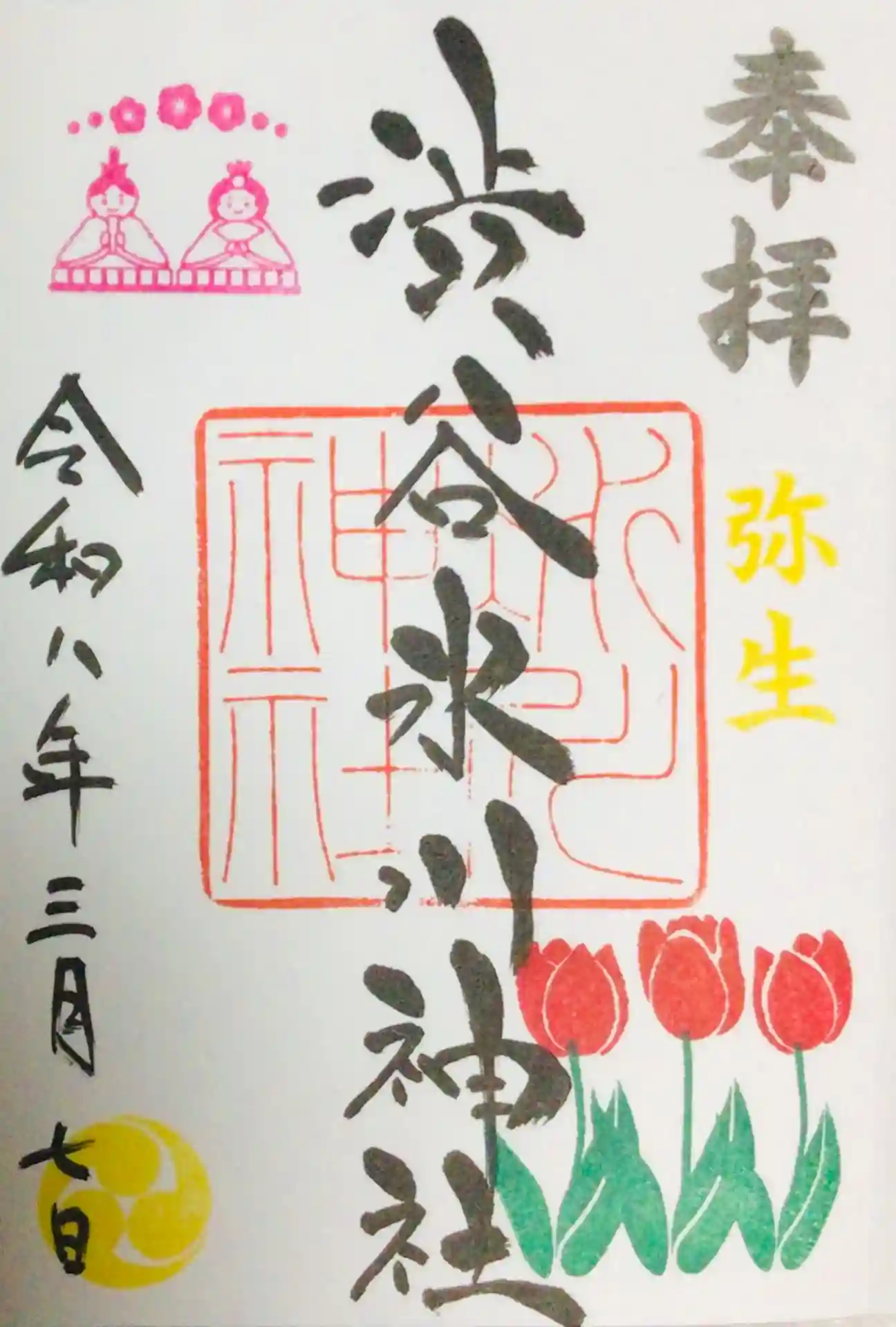 かわいいピンクの御朱印です。毎月人気のようです。