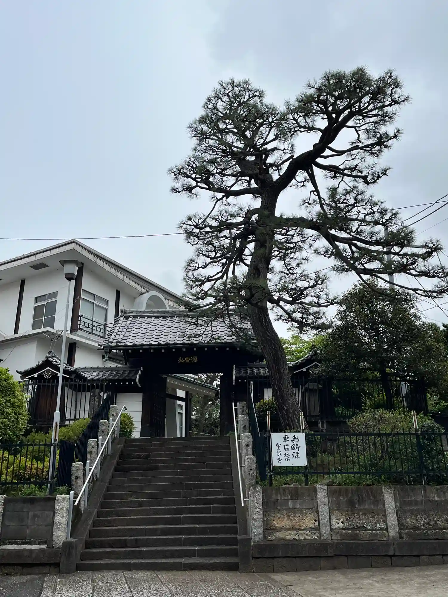 山門横の立派な松をはじめ、緑が多くきれいに…
