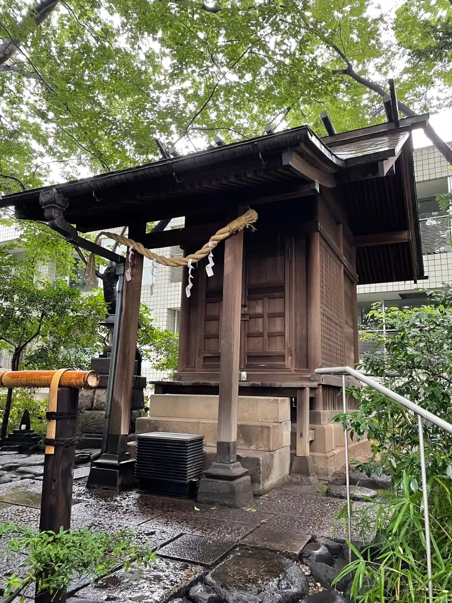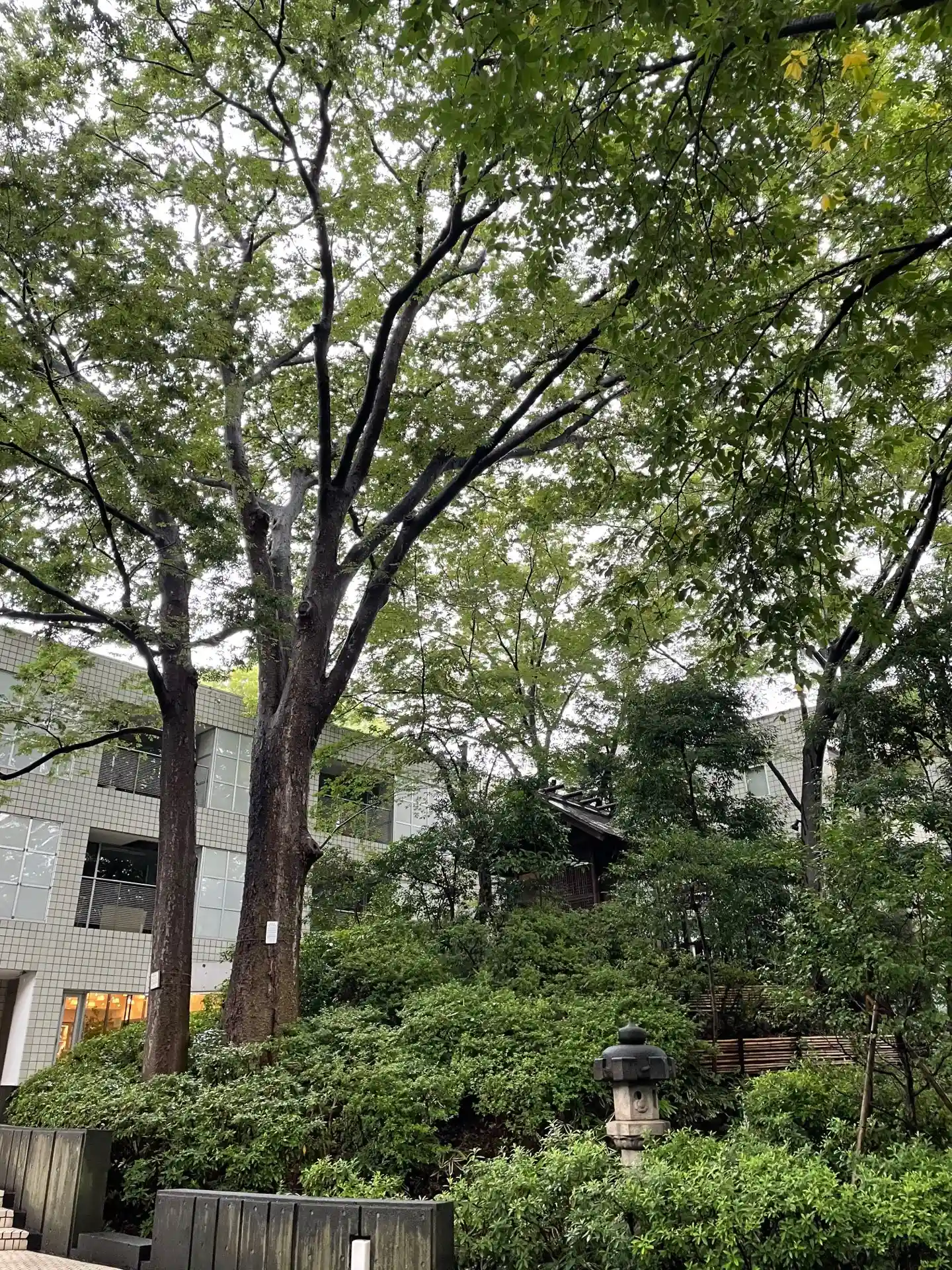 古墳の上に立つ猿楽神社@代官山。こんもりとした小山は6〜7世紀の古墳時代の円墳でした。大きく枝を広げたケヤキの下で、緑が濃い憩の場になっています。