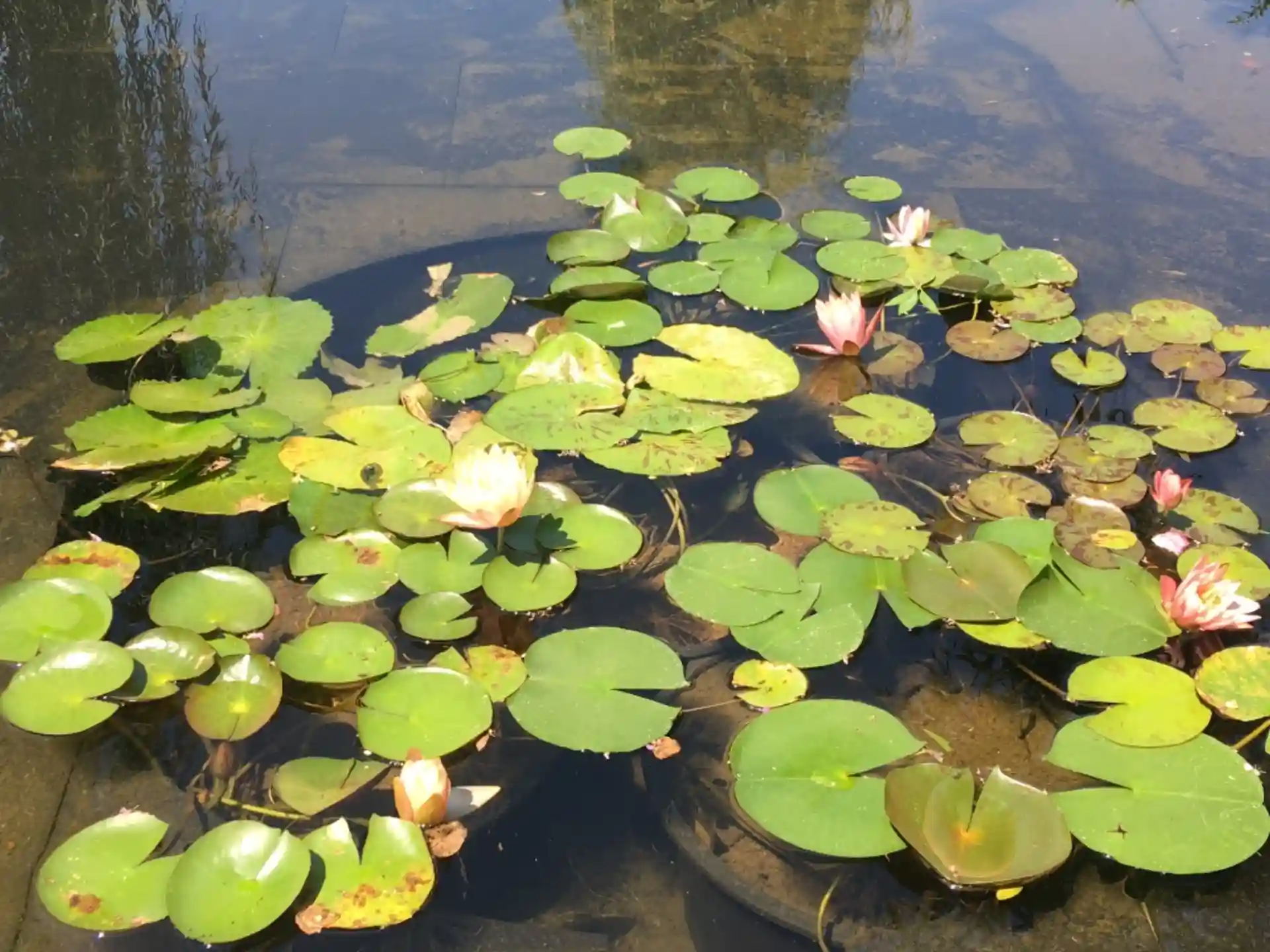 モネの絵画が好きな人が造ったんだろうなぁ、と感じるお庭でした。睡蓮の合間を縫ってメダカが泳いでいました。真夏の炎天下の中、せっせと庭や池のお世話をされている係員さんたちがおられて、頭が下がる思いでした。
