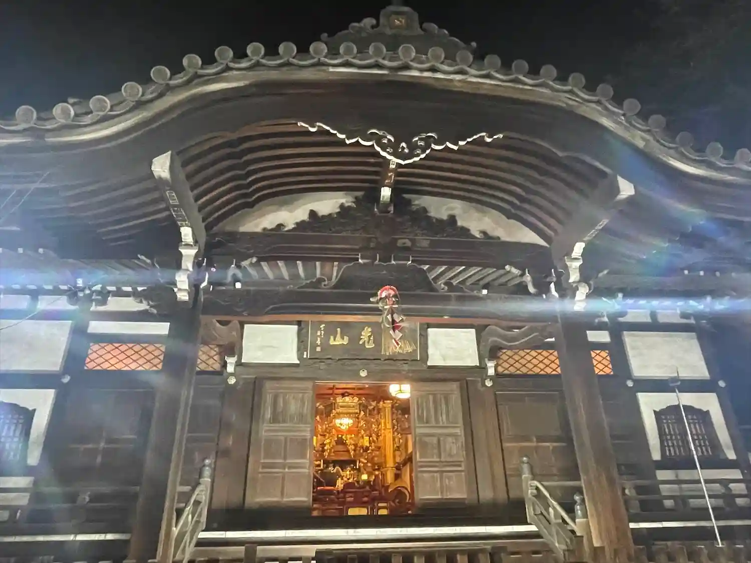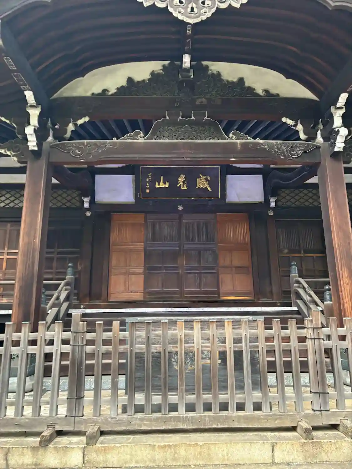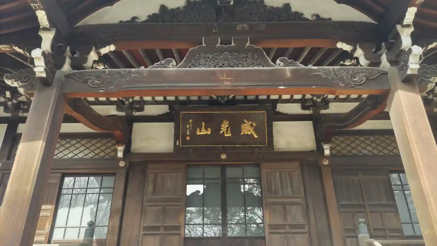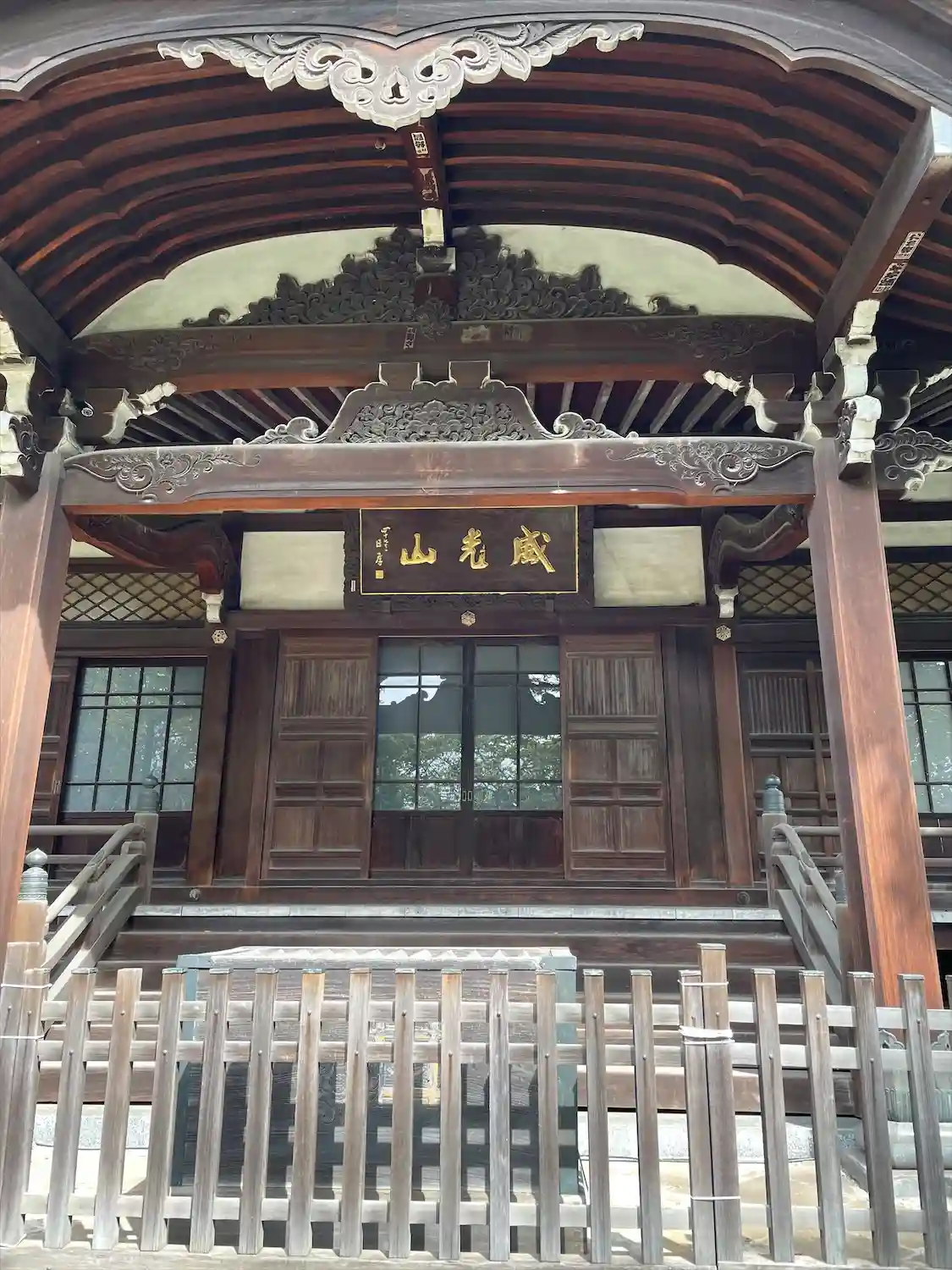 山門には<威光山>の提灯が架かる。