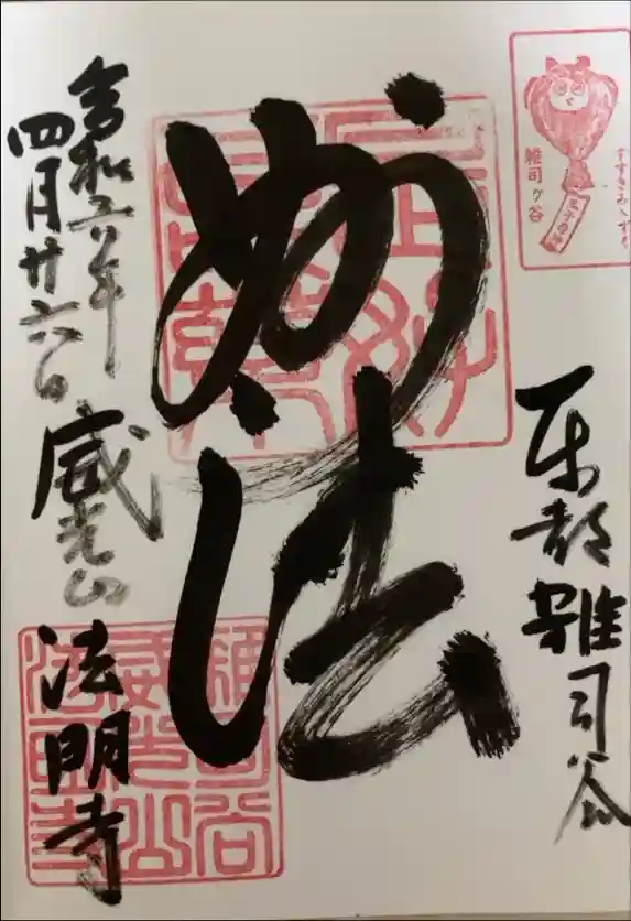 法明寺さんの御朱印を直書きで拝受。法事中にもかかわらずご対応いただきました。ありがとうございました。