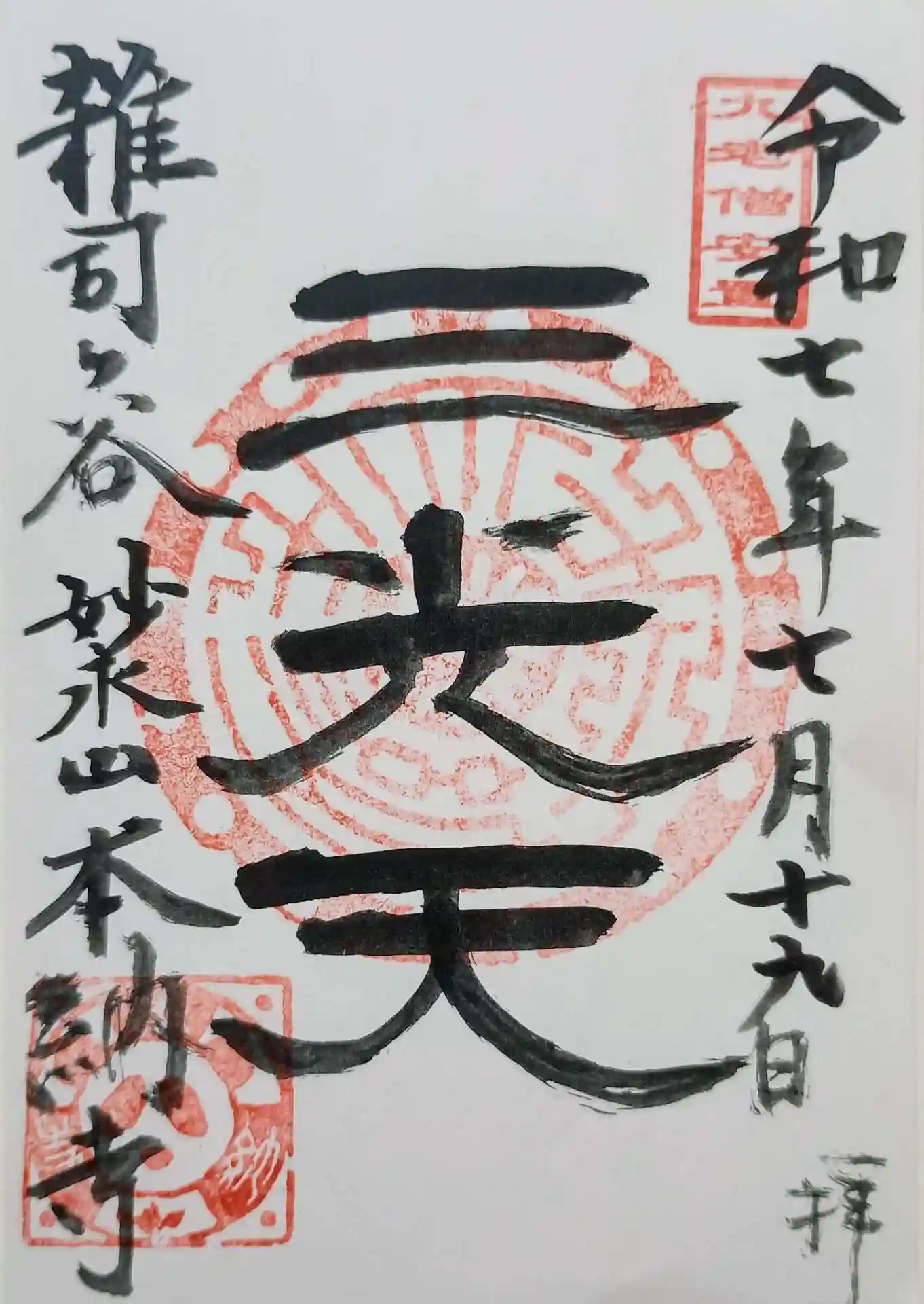 三光天の御朱印を書置きで拝受。御首題もいただけます。