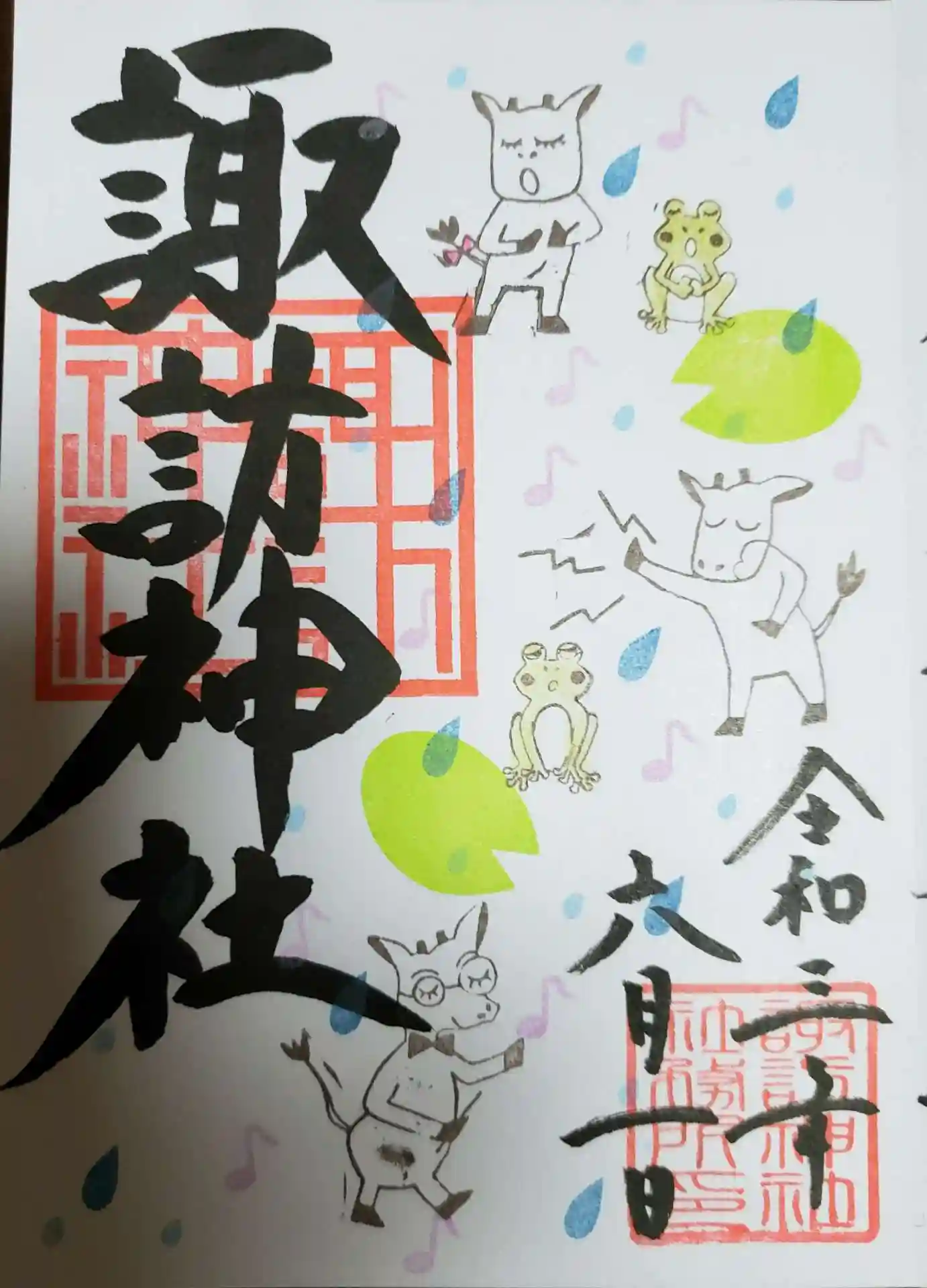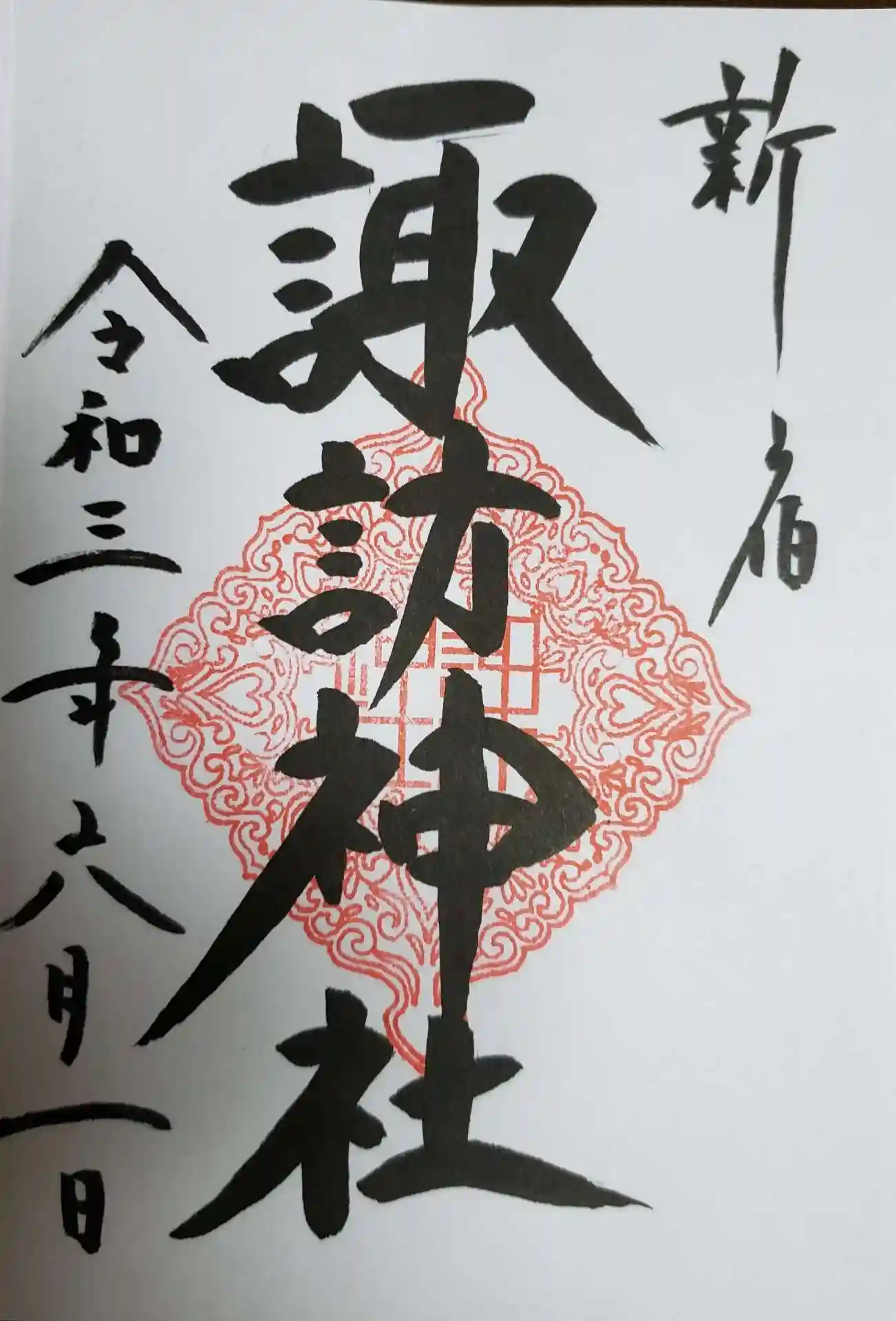 現在諏訪神社では、金曜日は書き置きのみ対応とのこと、前回偶々金曜日だったので四種とも書き置きを頂いてきましたが、六月に入り早速お参りして御朱印も頂いてきました。直書きが二種。書き置き対応が二種でした。月替わりの御朱印、素敵です。