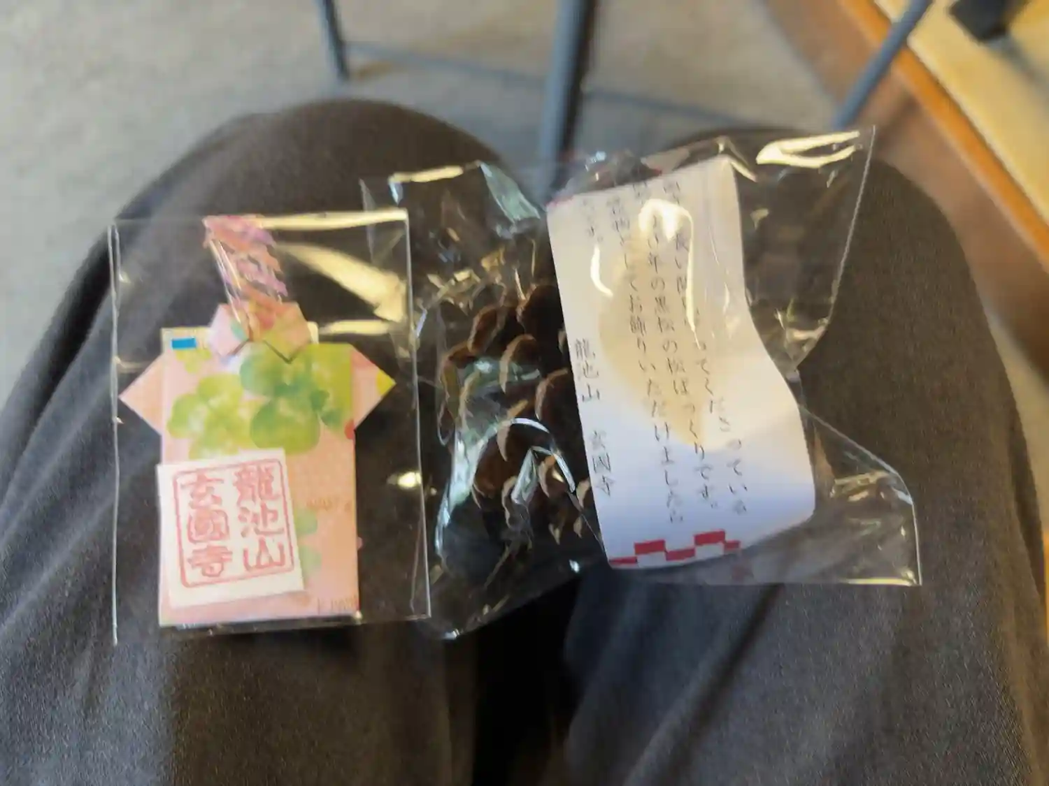 樹齢500年黒松の松ぼっくりをいただきました。御朱印はご本尊です。