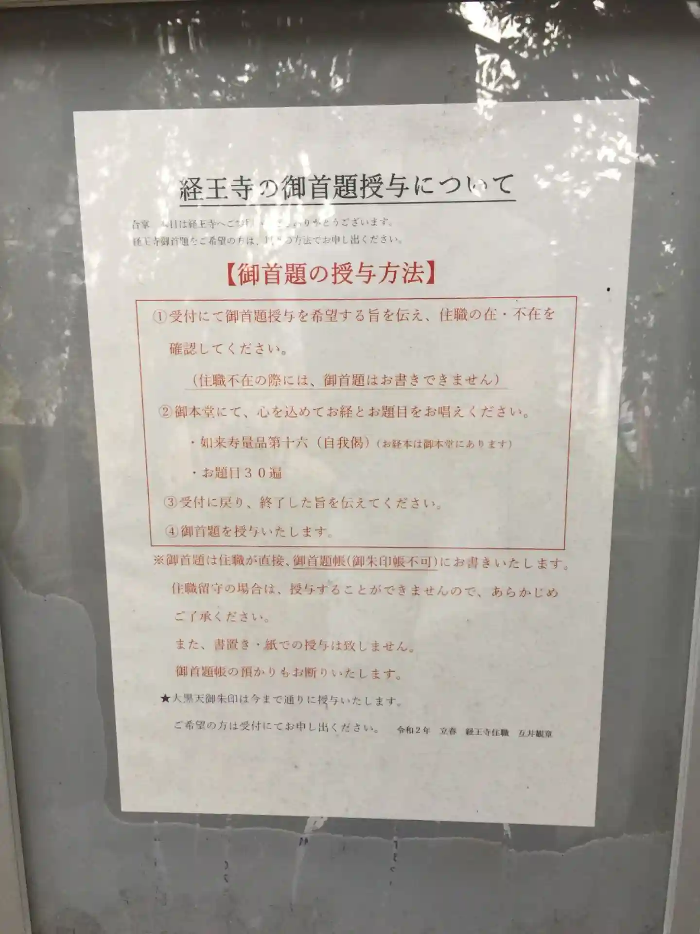 経王寺でいただける大黒天御朱印