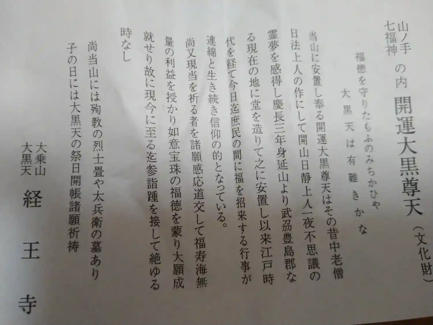 東京都新宿区の経王寺(山之手七福神の大黒天)…