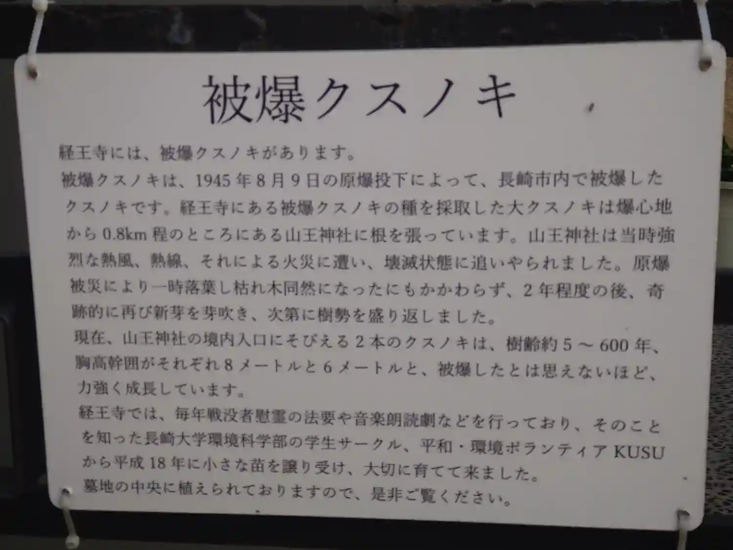 こちらのお寺に、被ばくクスノキの子孫がいたとは…