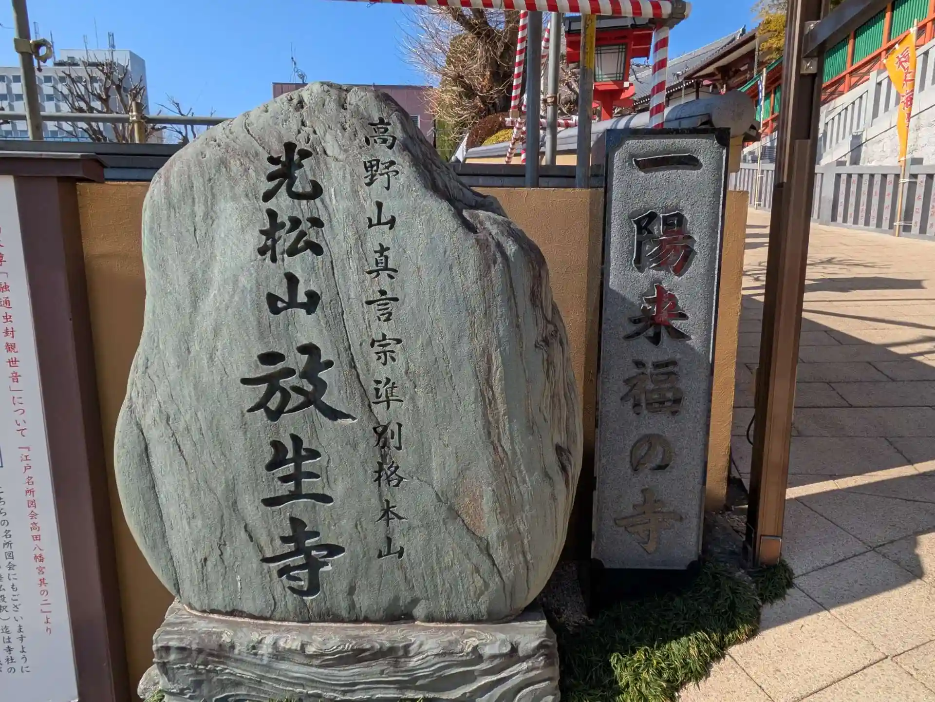 放生寺(ほうじょうじ)は、高野山真言宗に属する寺院で、光松山威盛院(こうしょうざん いせいいん)と号します。東京都新宿区西早稲田に位置し、御府内八十八ヵ所霊場30番札所、江戸三十三観音15番札所、山の手三十三観音霊場16番札所、東京三十三観音霊場22番札所として知られています。