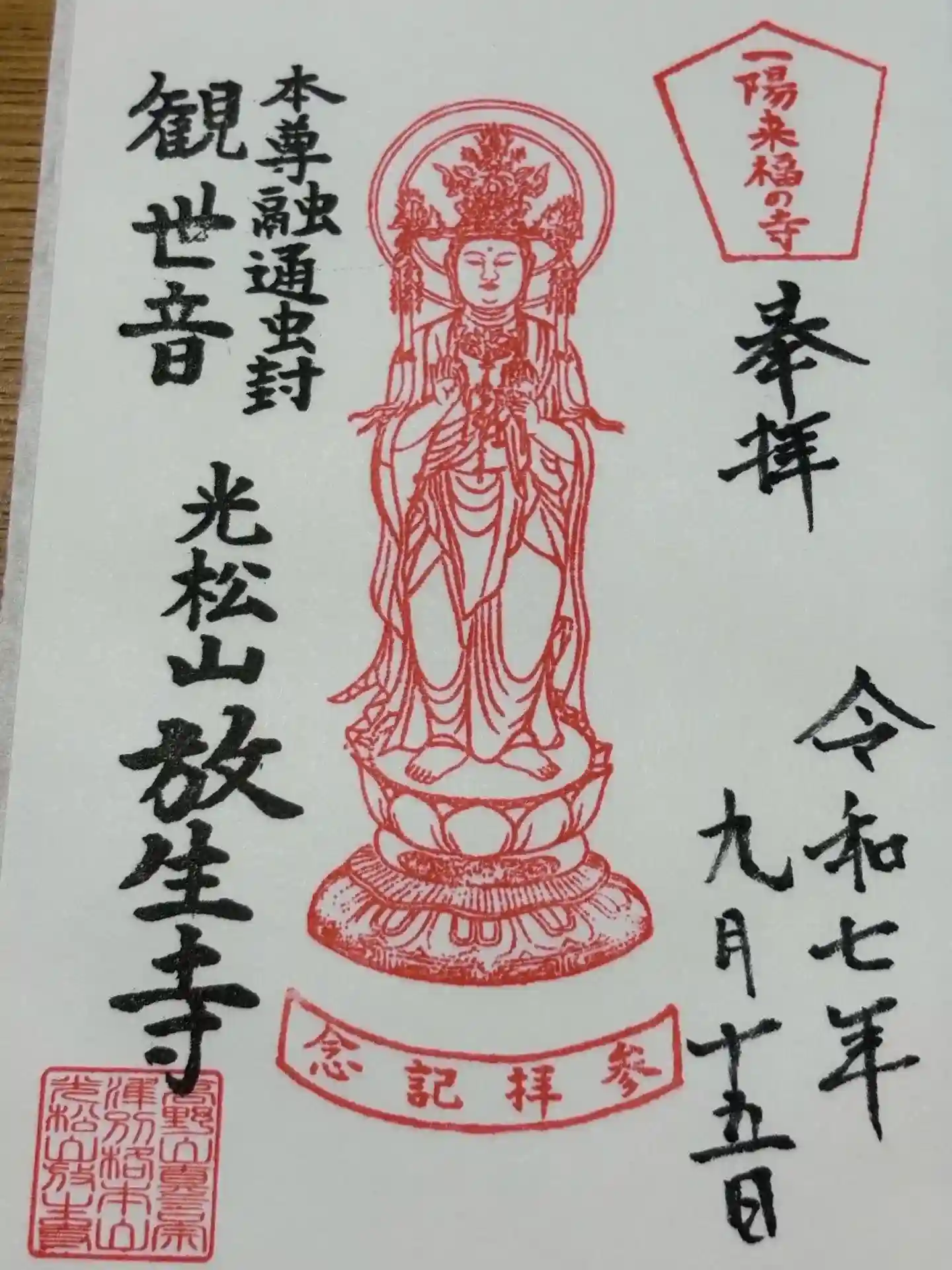 融通虫封観世音菩薩 御朱印