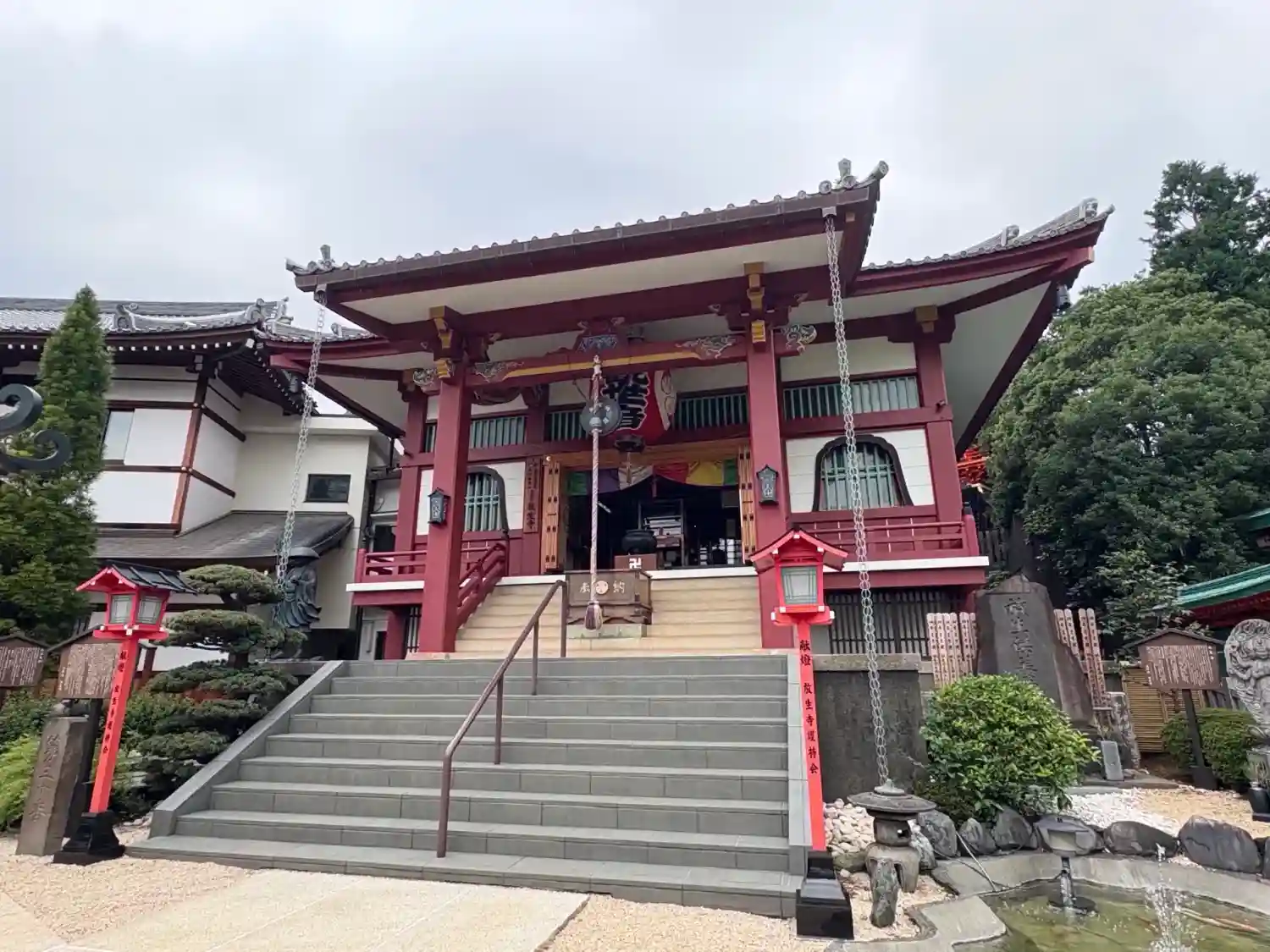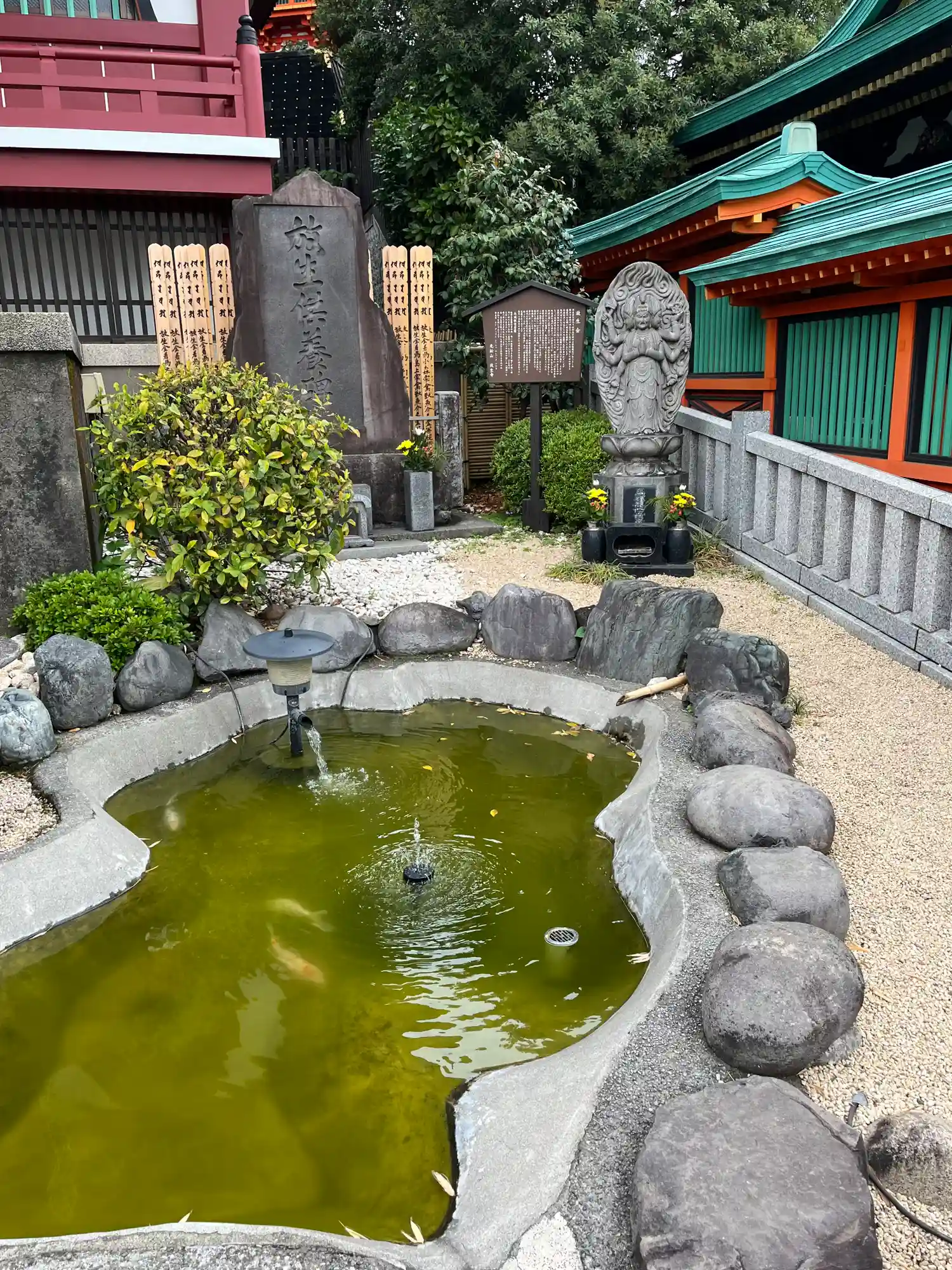 夏の盛りだからか、坂を上って真っ先に目に飛び込んでくるのは本堂前の噴水池。水の音が気持ちいい〜。