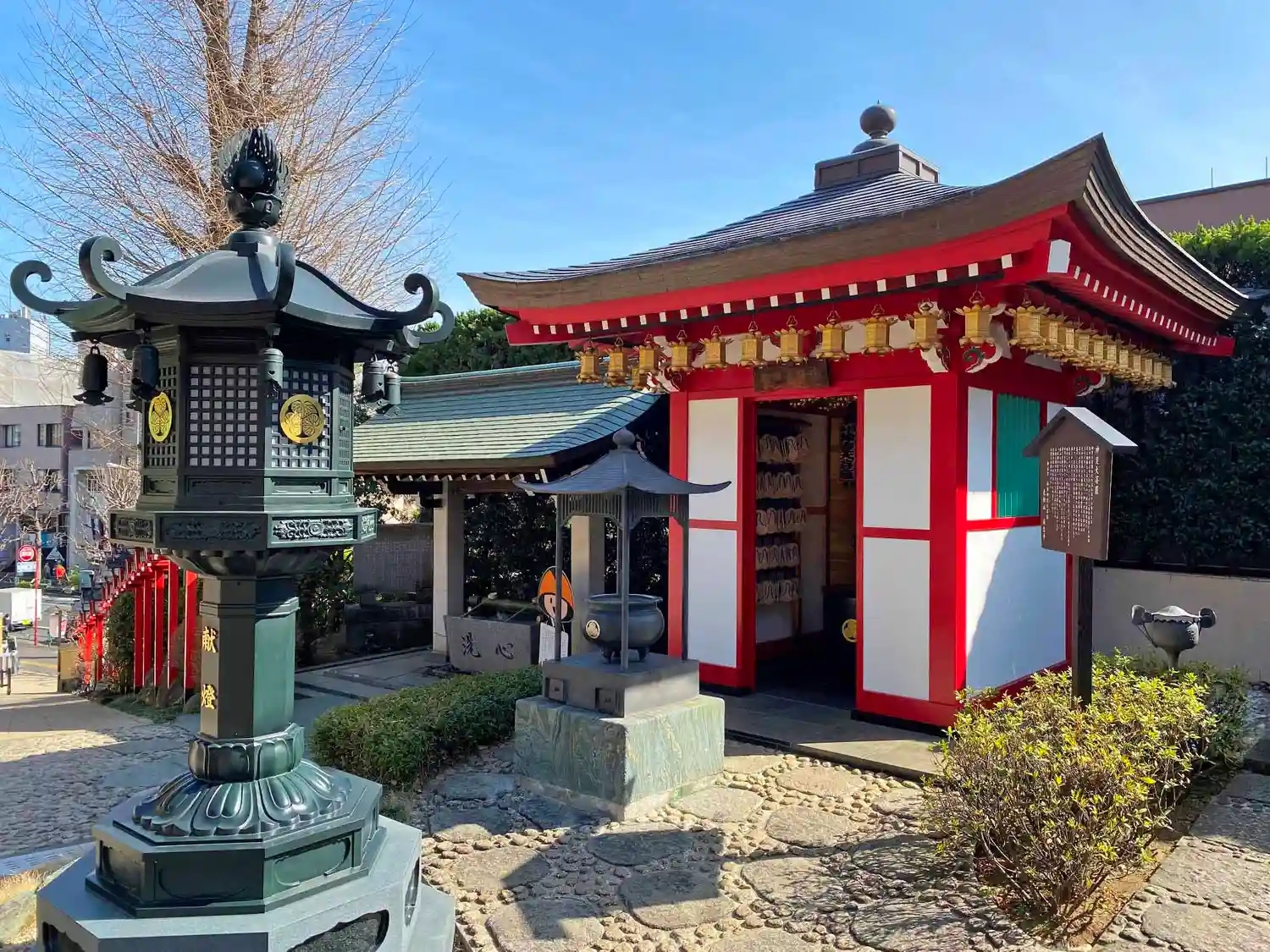 入口の赤い灯籠が印象的。