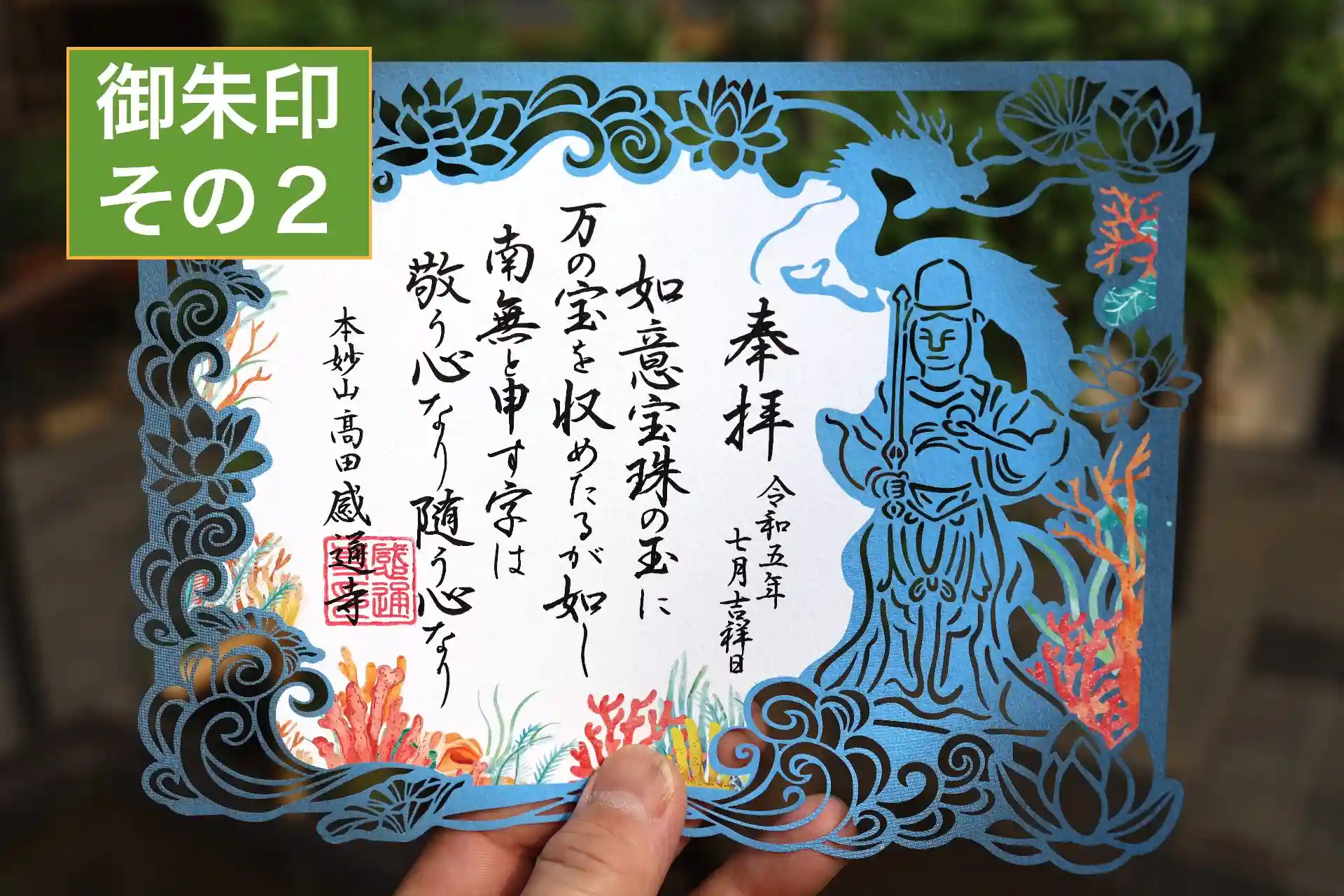 7・8月「 龍女 切り絵 」御首題・御朱印となります。