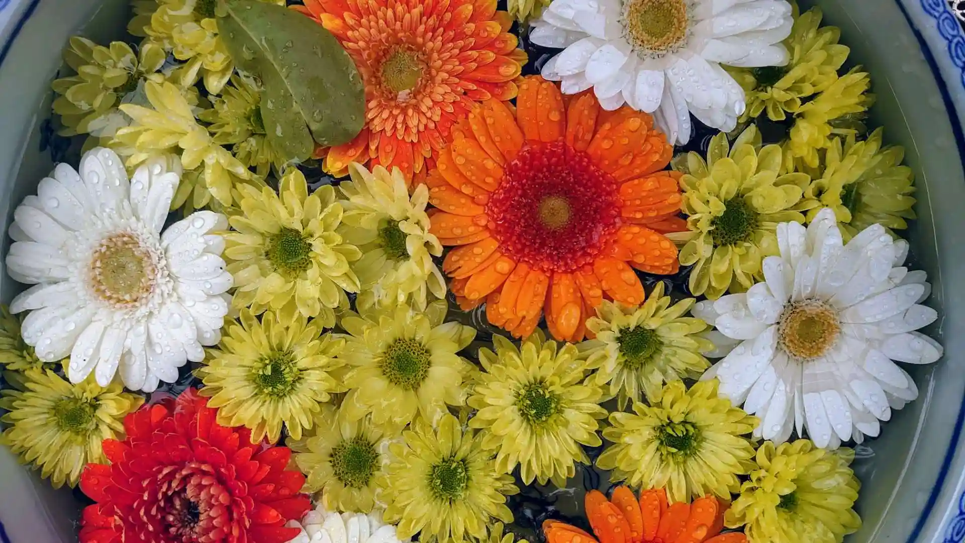 花の浮かべ方やかわいい置物も工夫されていますね。