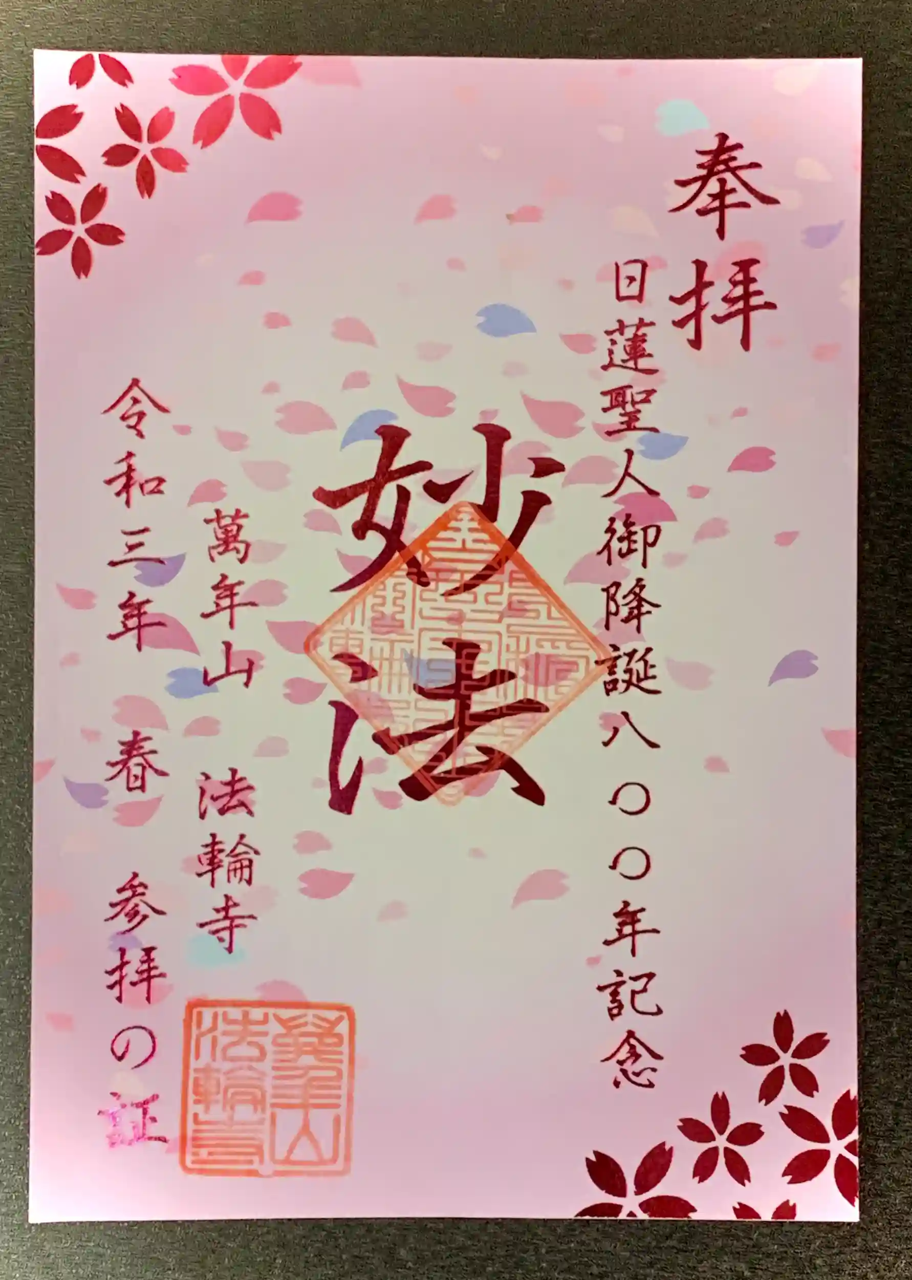 ・日蓮聖人御降誕800年記念の春の御朱印。