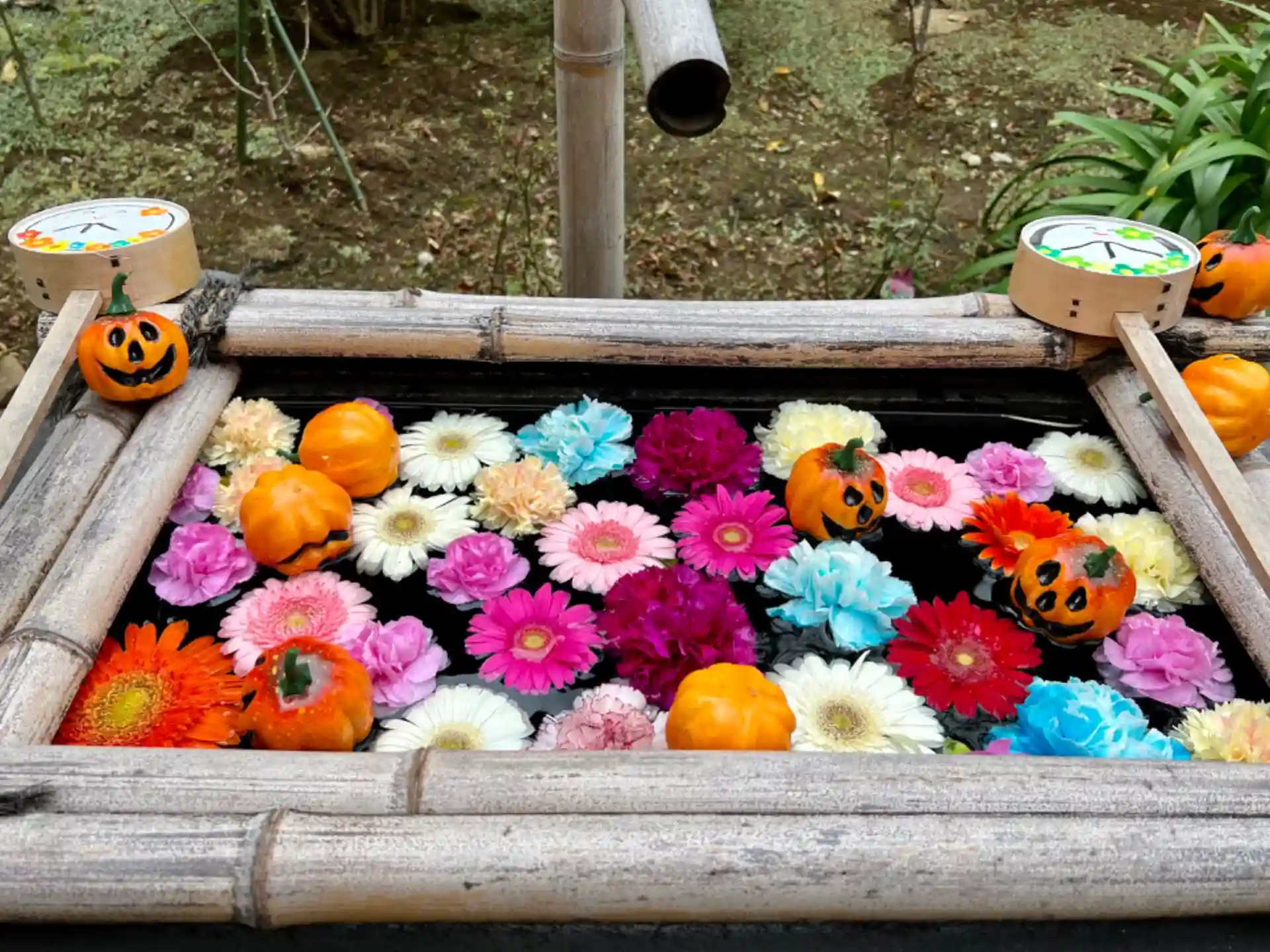 秋をたっぷり詰め込んだ花手水。