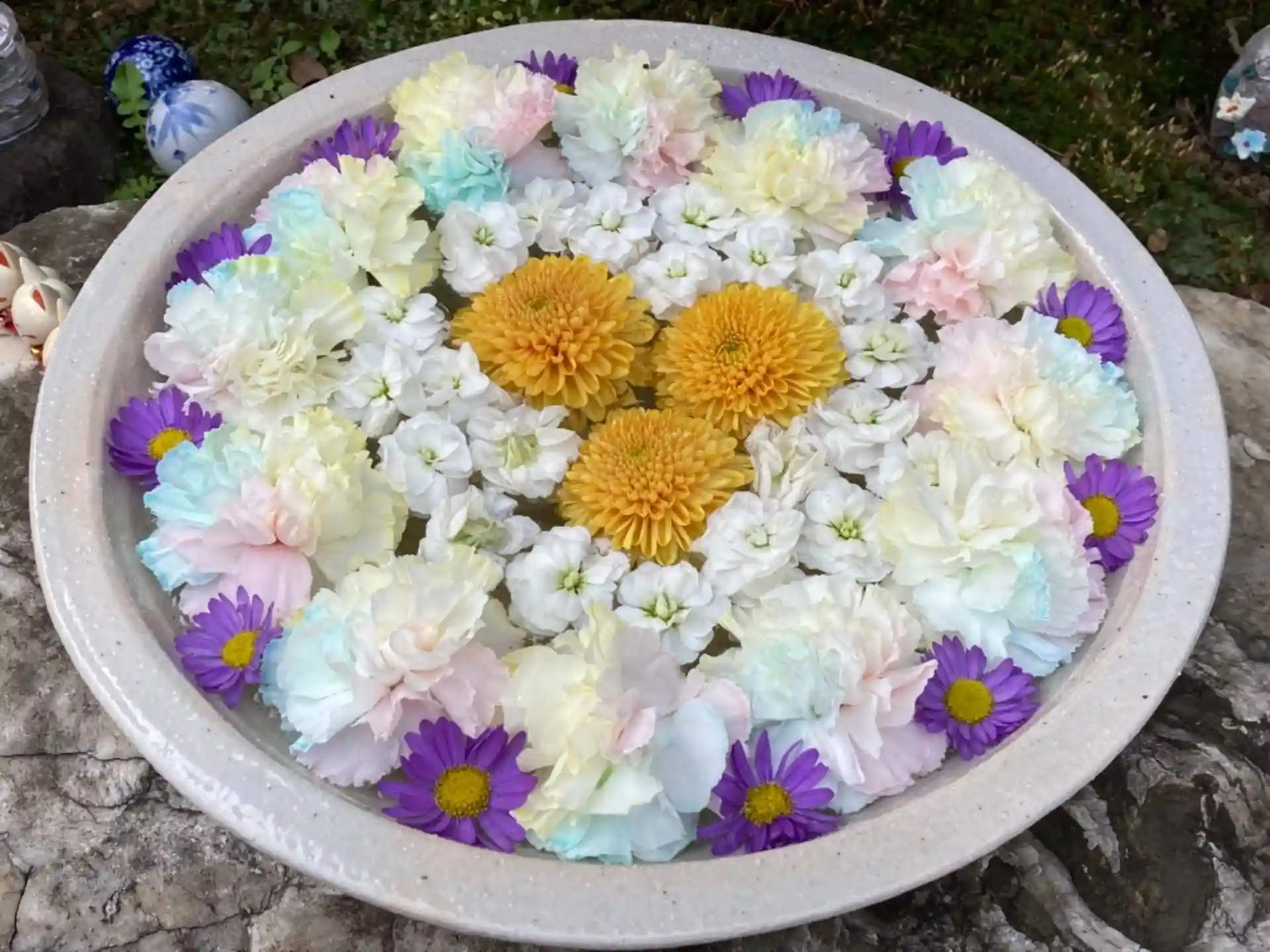 花手水を見てみたくて思い切って行ってみました。たくさんのお花がとてもキレイで癒されました。御朱印は数種類あり迷いに迷ってしまいました。キラキラした龍の御朱印いただいて良かったです。またお参りに行きたいステキなお寺でした。