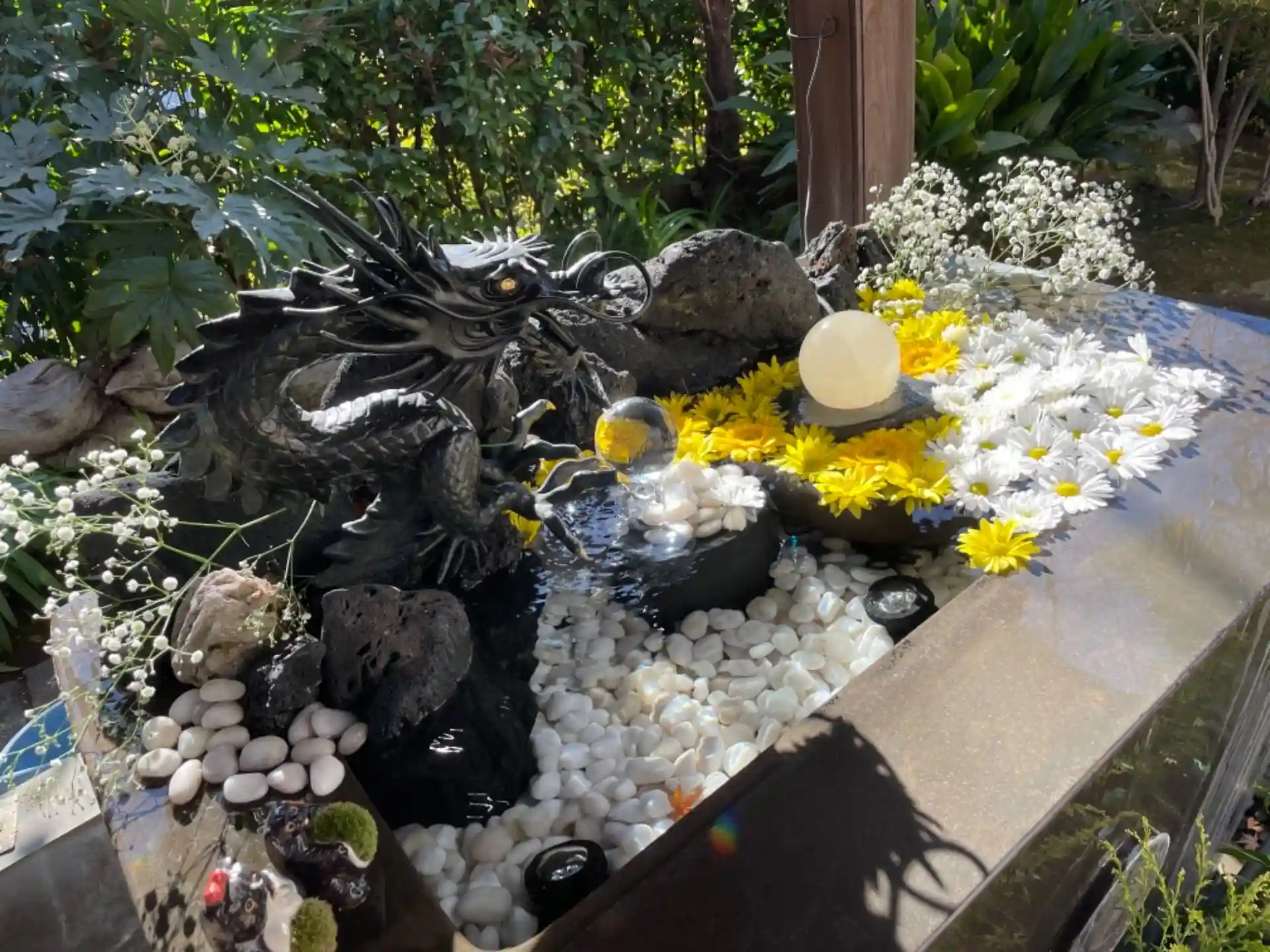 境内の彼方此方が花や石で彩られ、美しさの中で手を合わさせて頂きました。