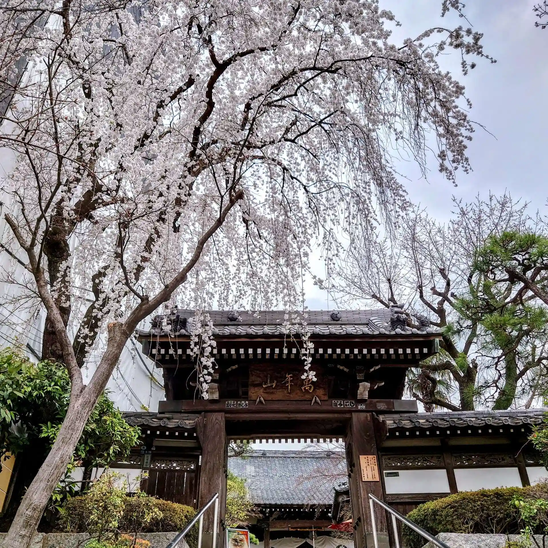 山門の枝垂れ桜がちょうど満開😆🌸