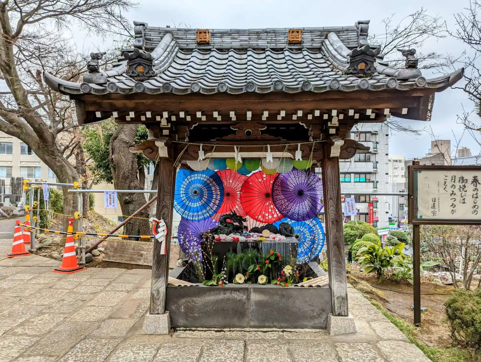 🌼山門の所の花手水🌼