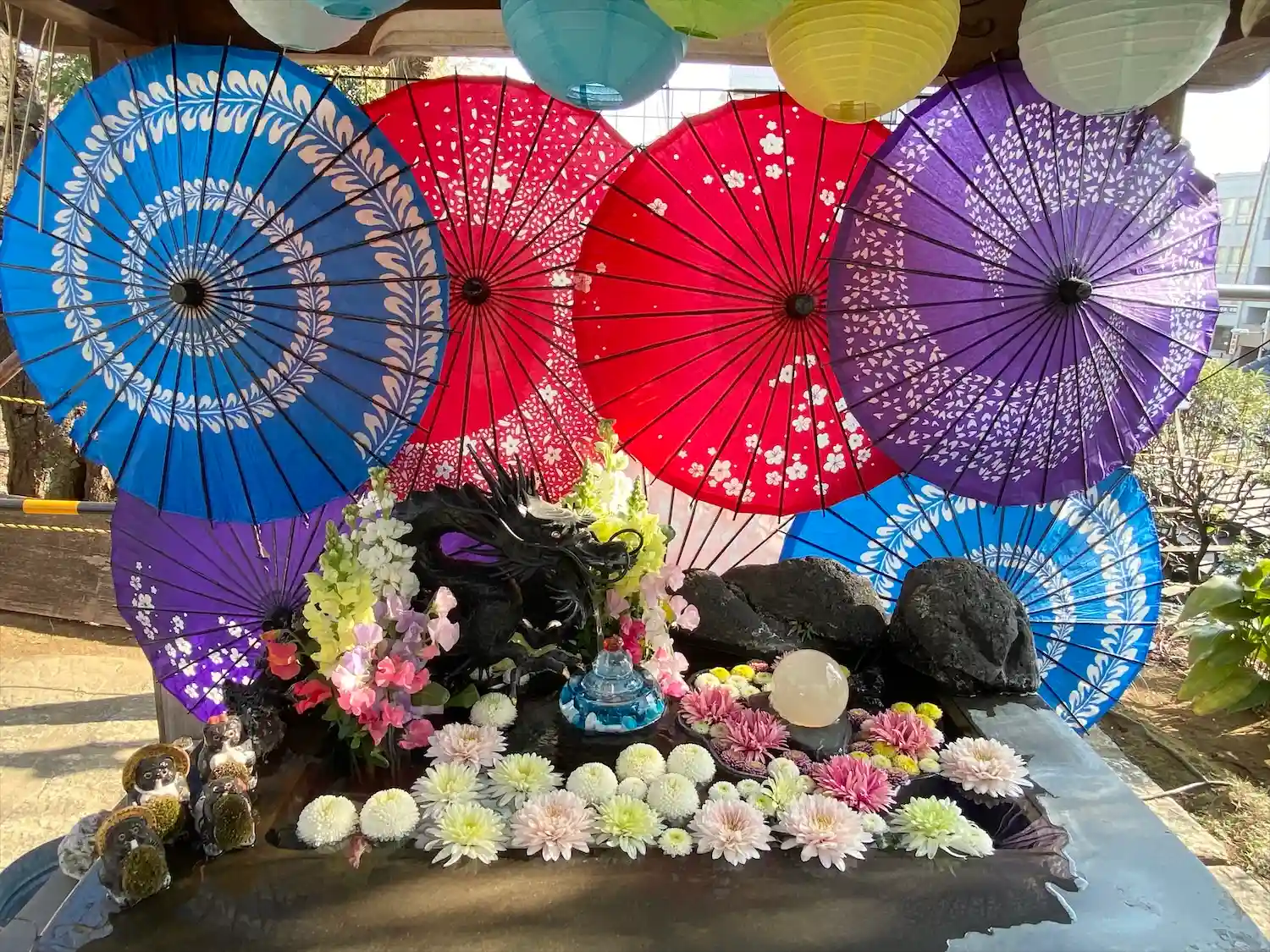 境内のいたるところに花手水が🌸🌼🌺