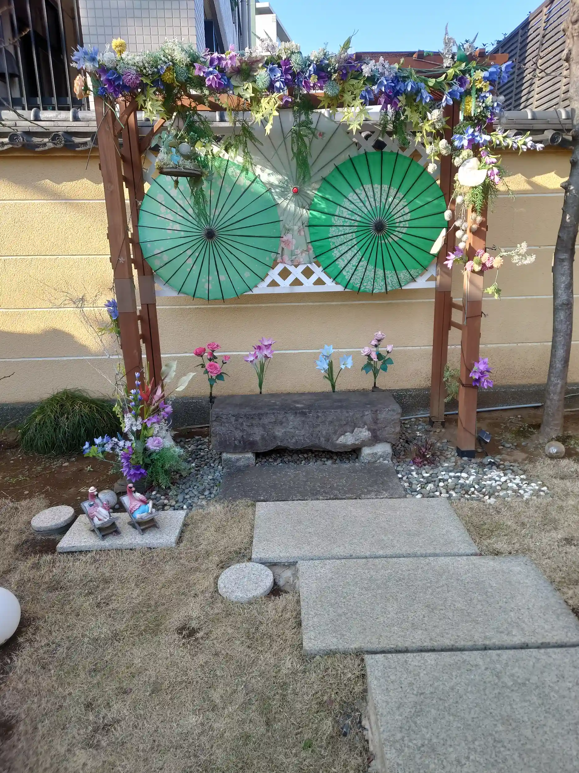 オフ会後に有志の皆様と一緒にお参りさせていただきました。境内の至る所にかわいい装飾や綺麗なお花があり、とっても素敵で癒されました✨