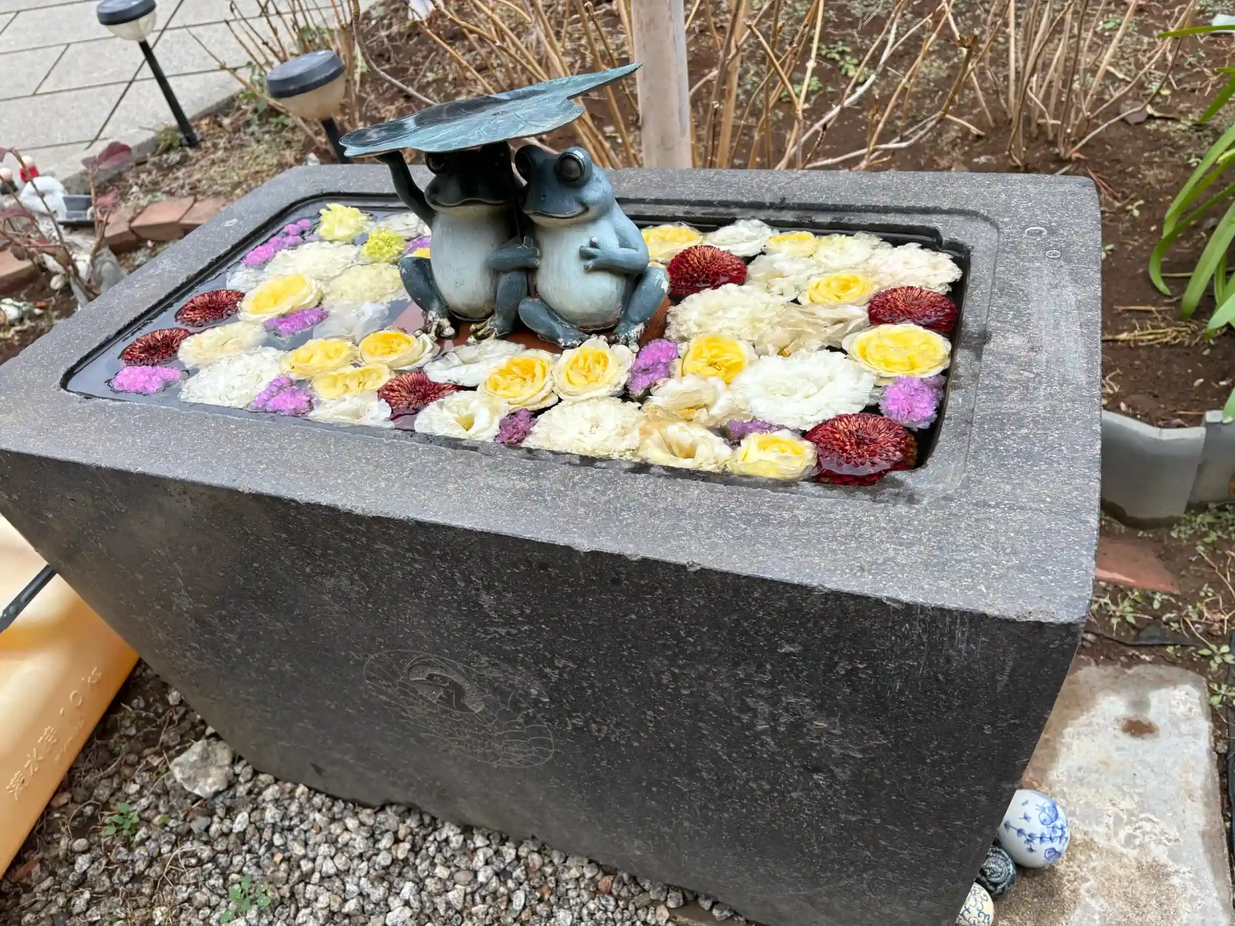 境内のあちこちに綺麗な花手水。
