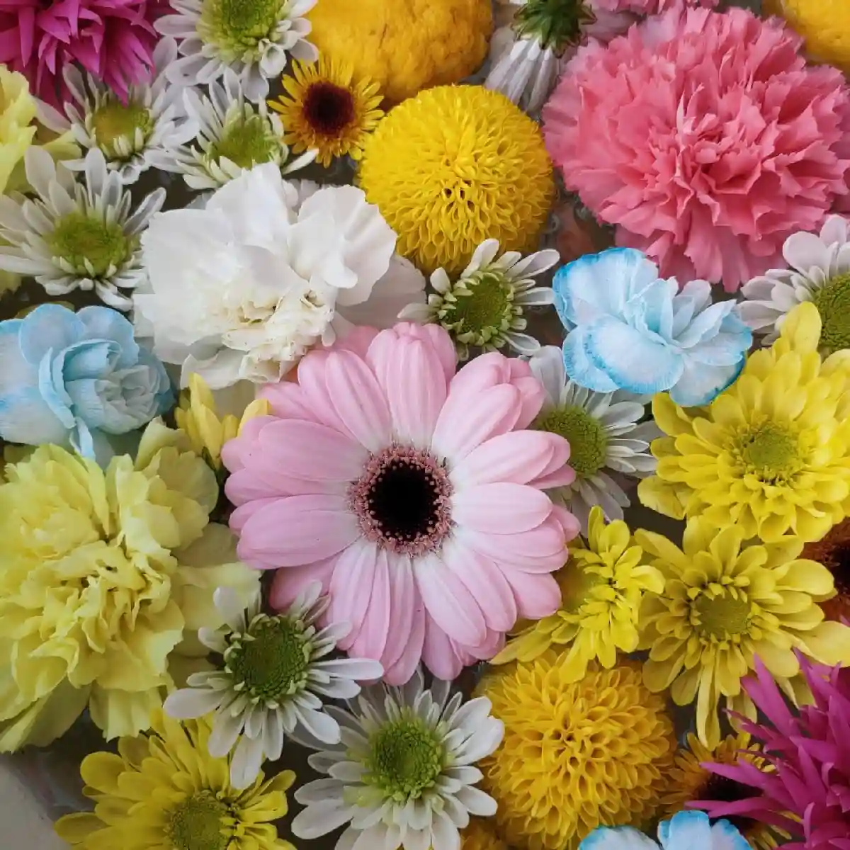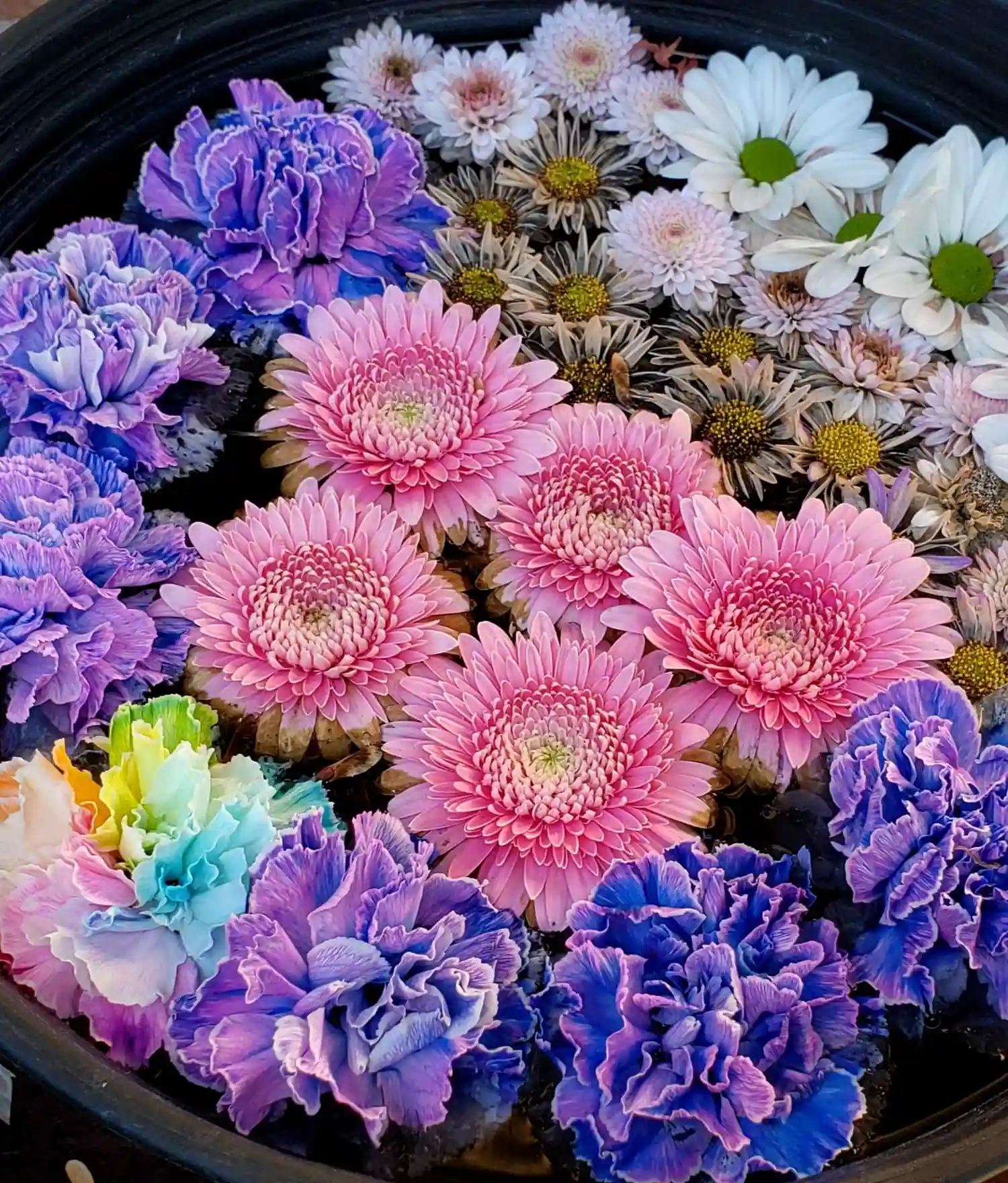 カラーカーネーション基調の花鉢^^