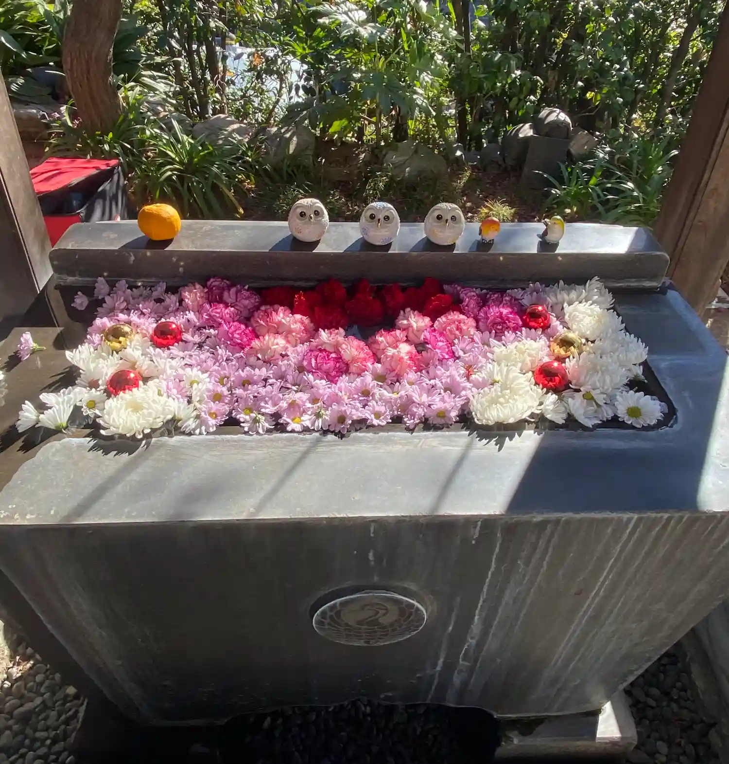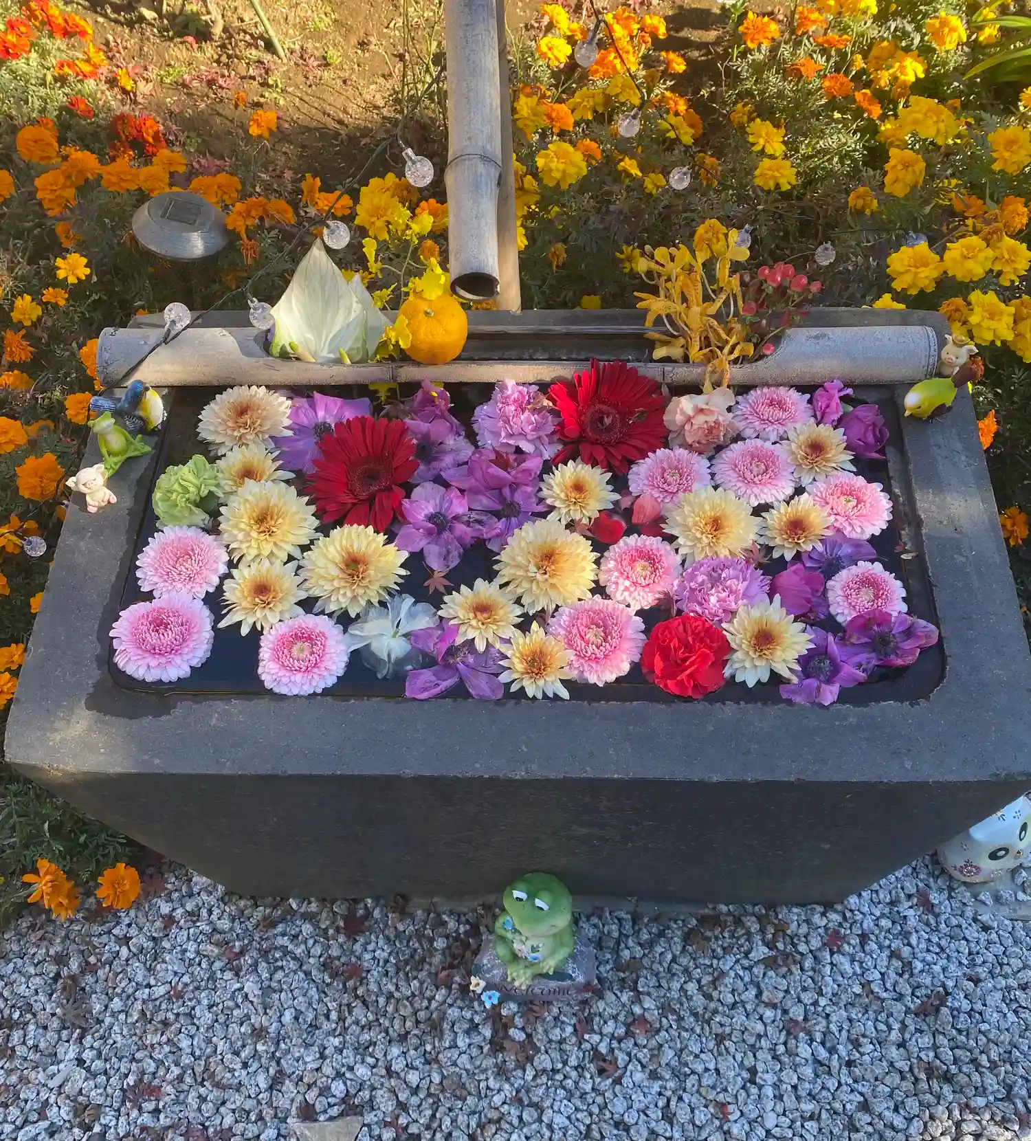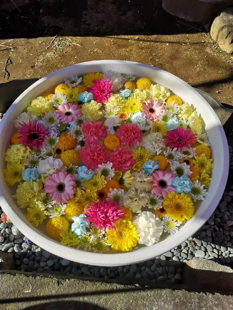 お風呂花手水 大きな鉢なのでお風呂と呼ばれています😄
