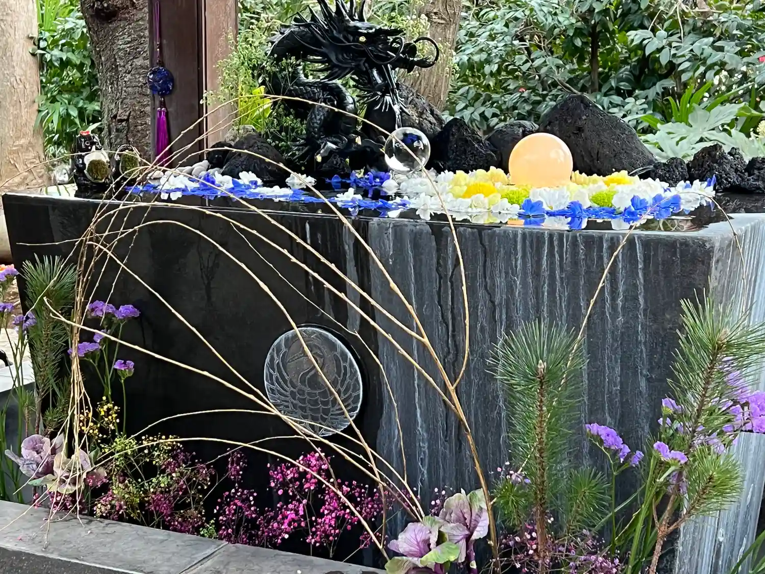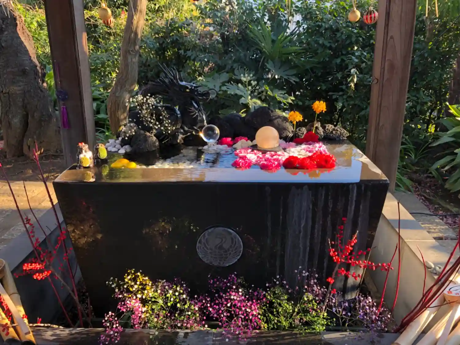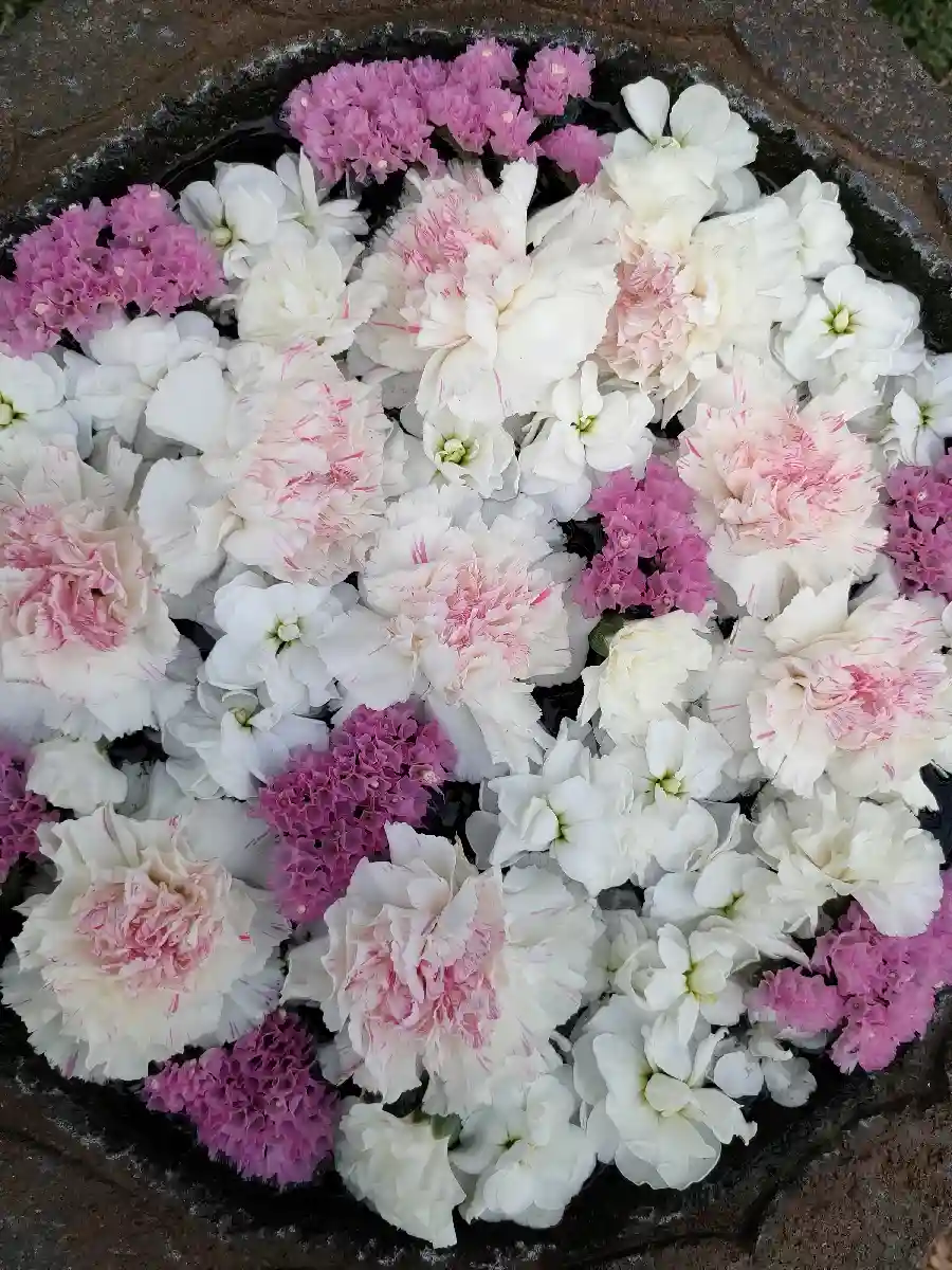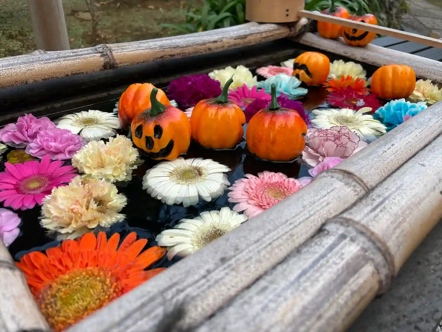 お風呂花手水 大きな鉢なのでお風呂と呼ばれています😄