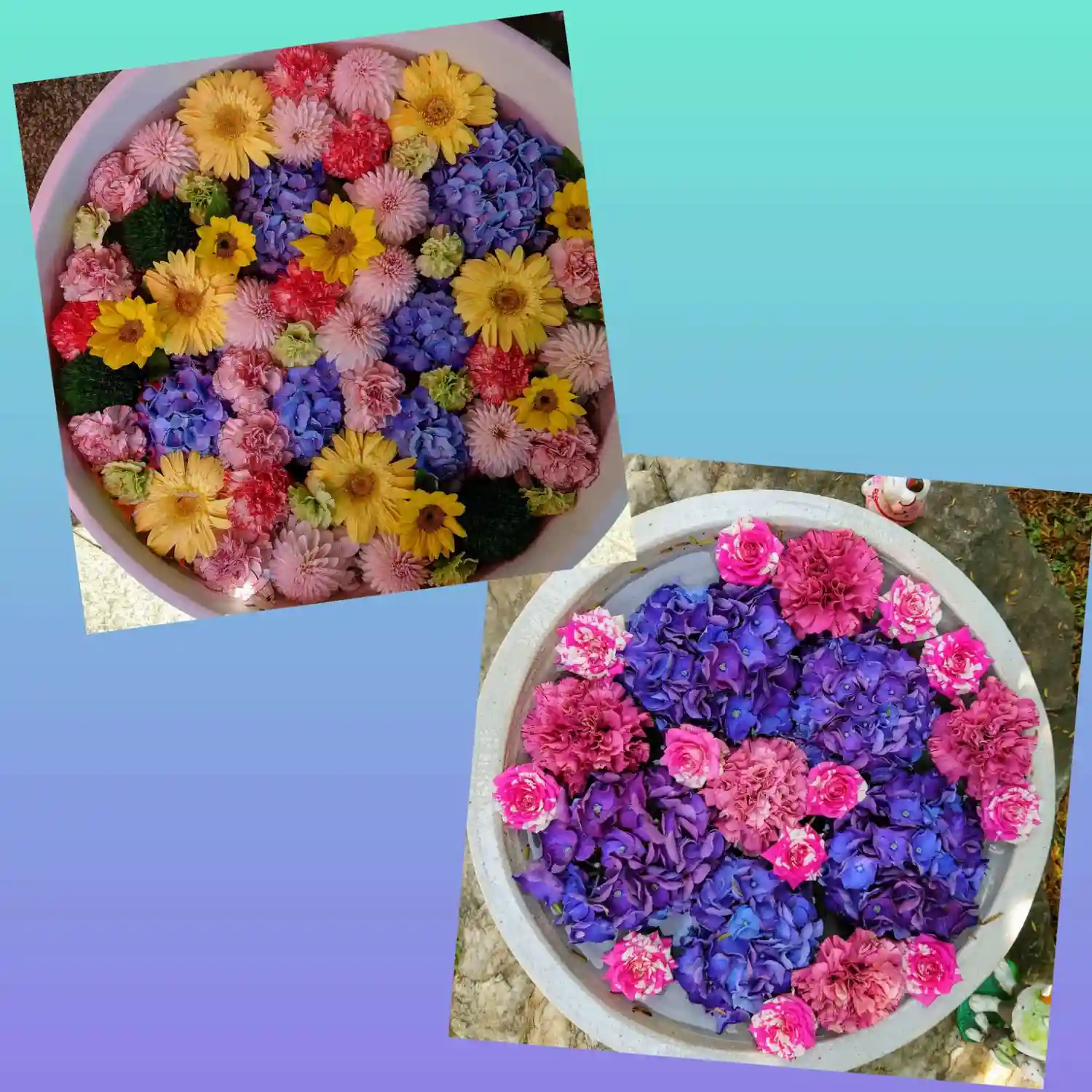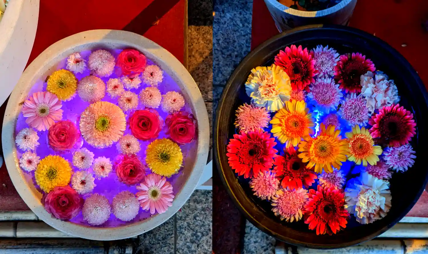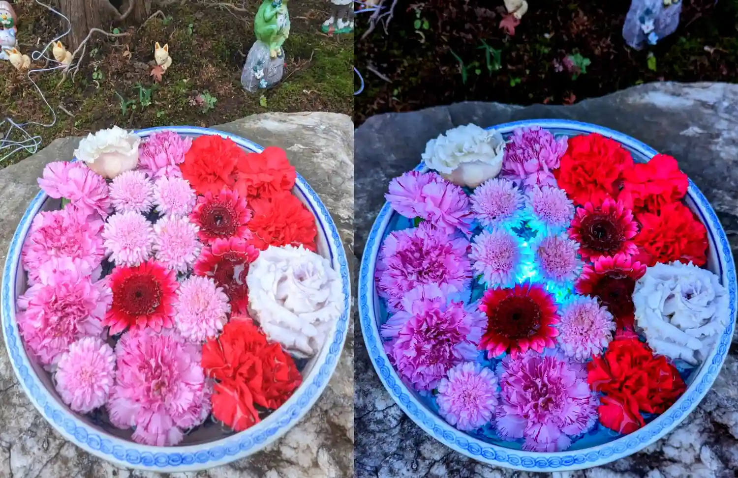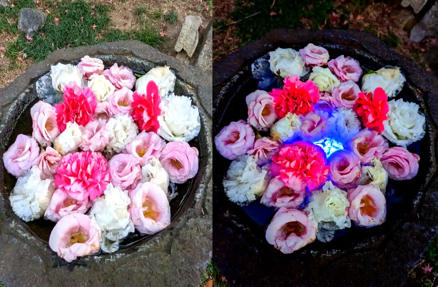 ☆花手水☆ 左側 ライトアップ前 右側 ライトアップ